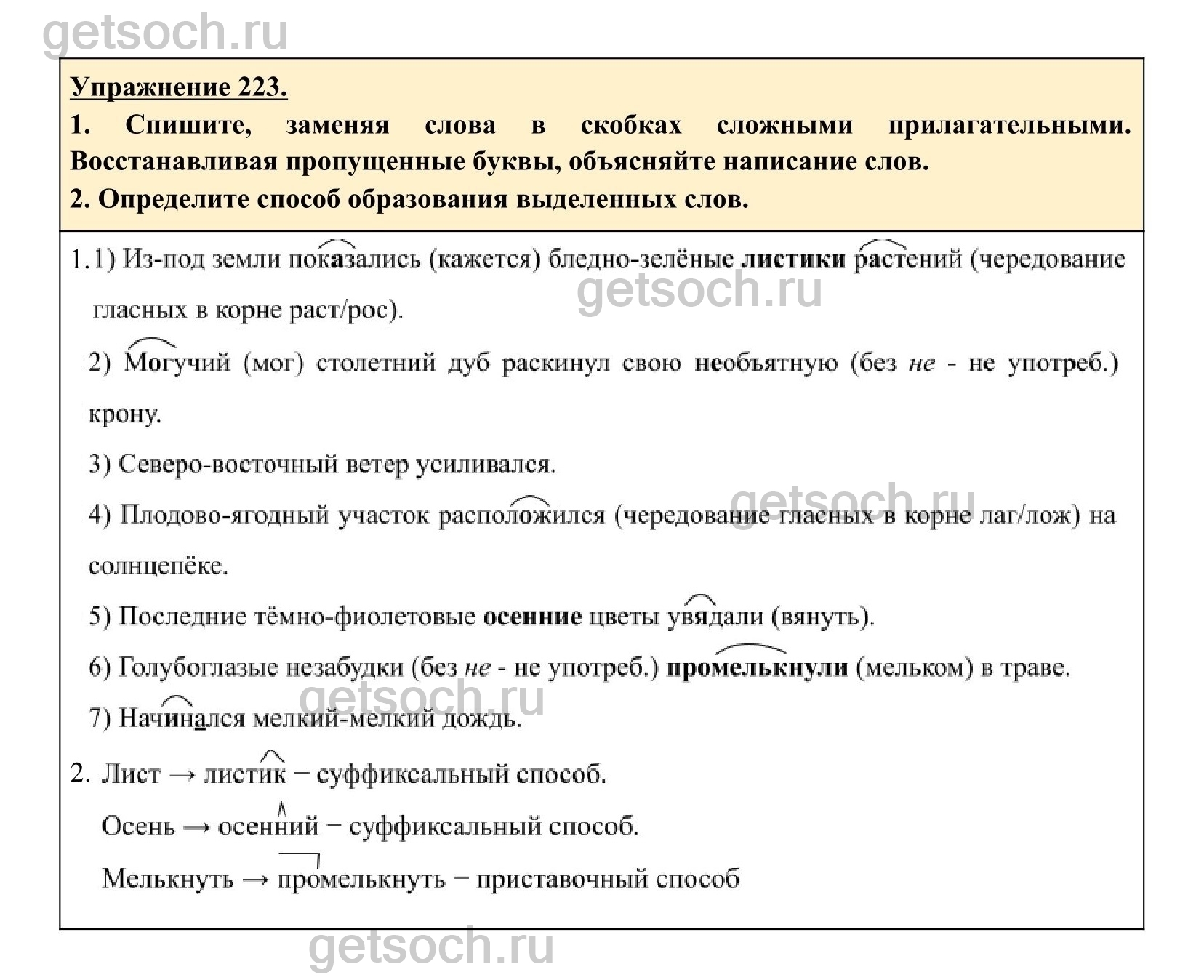Рассмотрим ответы на Упражнение 223 из учебника по русскому языку для 6 класса Разумовской