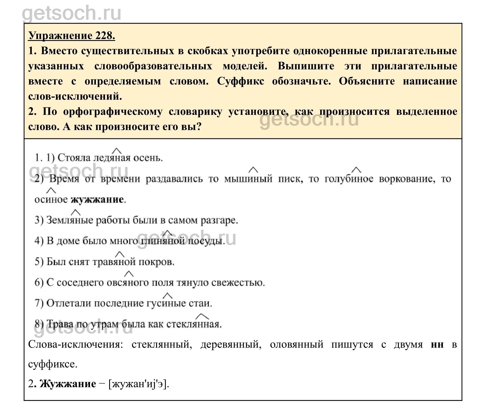 Рассмотрим ответы на Упражнение 228 из учебника по русскому языку для 6 класса Разумовской