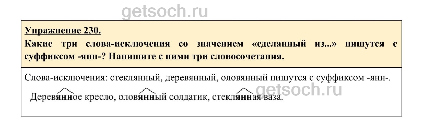 Рассмотрим ответы на Упражнение 230 из учебника по русскому языку для 6 класса Разумовской