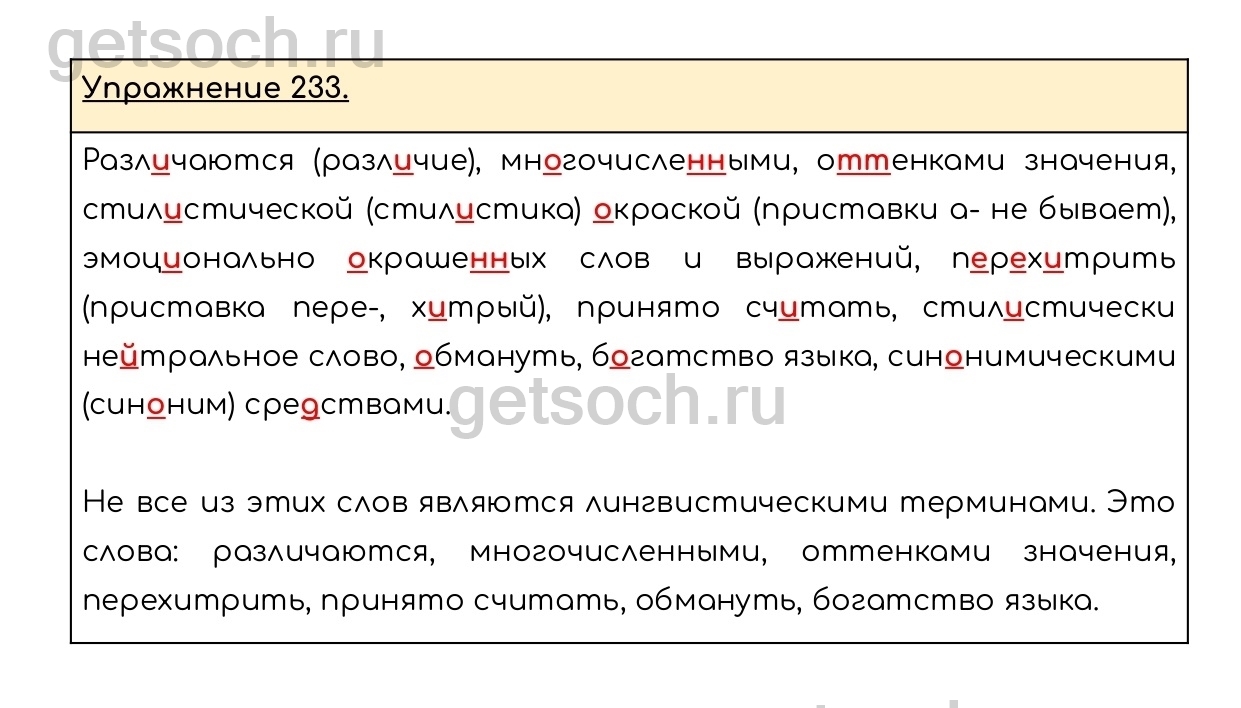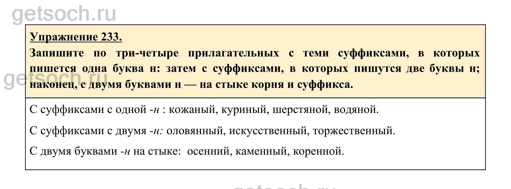 Рассмотрим ответы на Упражнение 233 из учебника по русскому языку для 6 класса Разумовской