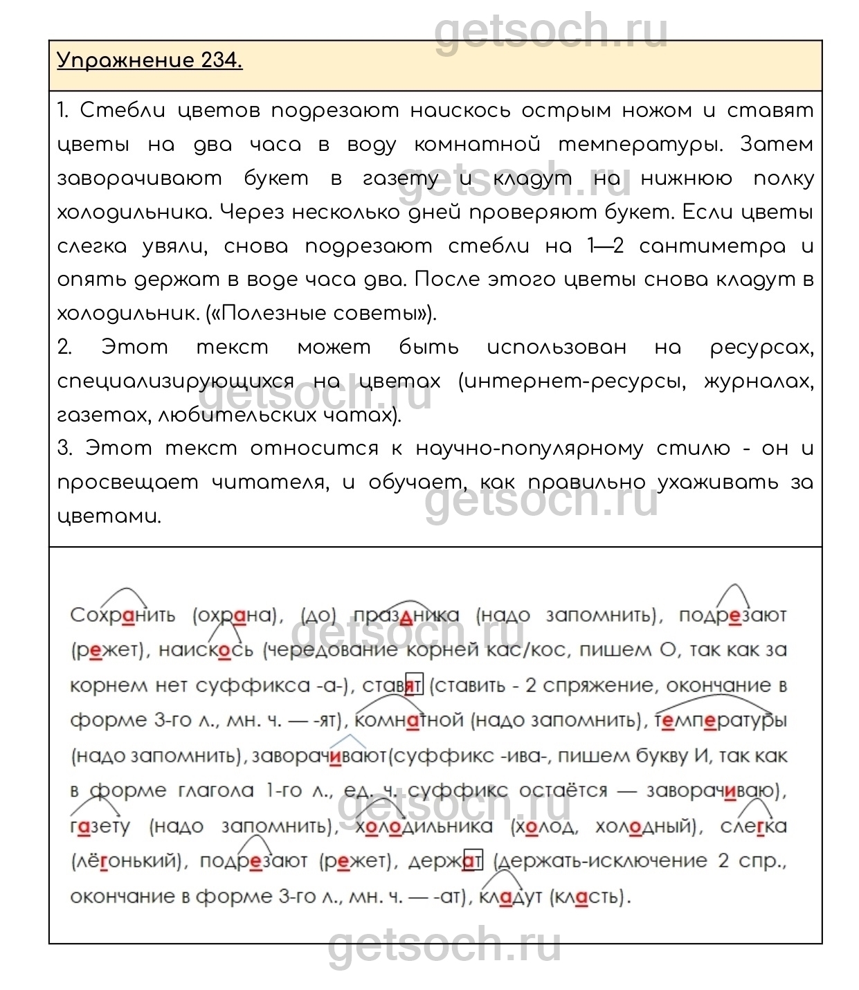 Рассмотрим ответы на Упражнение 234 из учебника по русскому языку для 6 класса Разумовской
