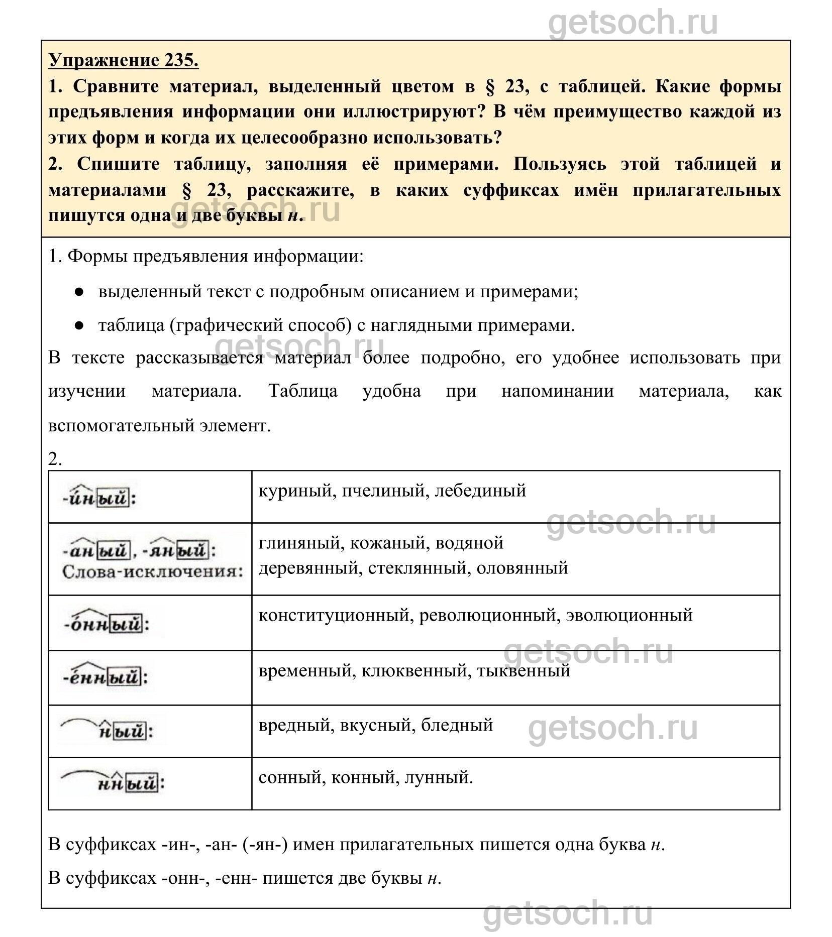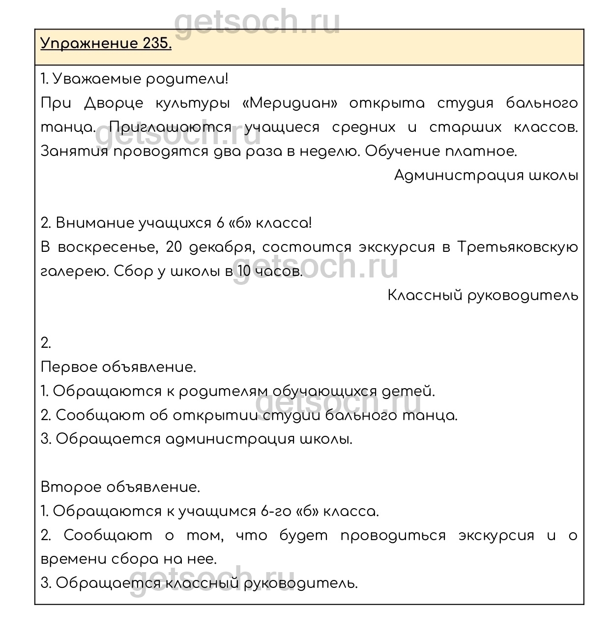 Рассмотрим ответы на Упражнение 235 из учебника по русскому языку для 6 класса Разумовской