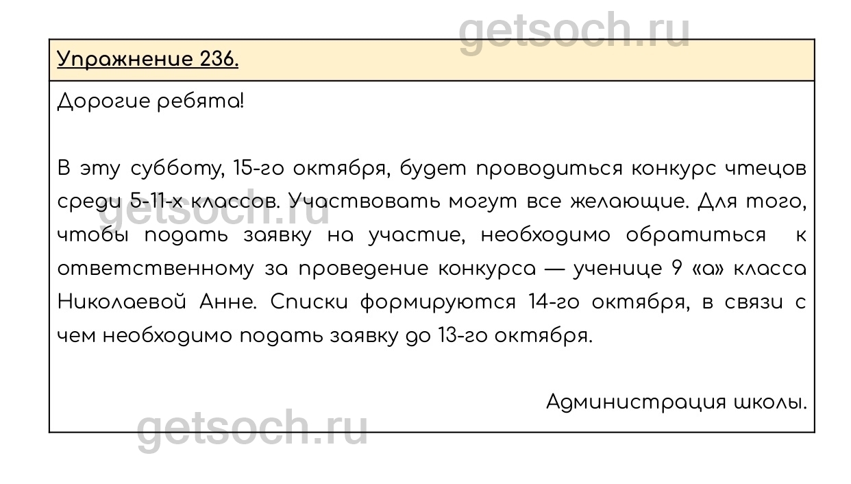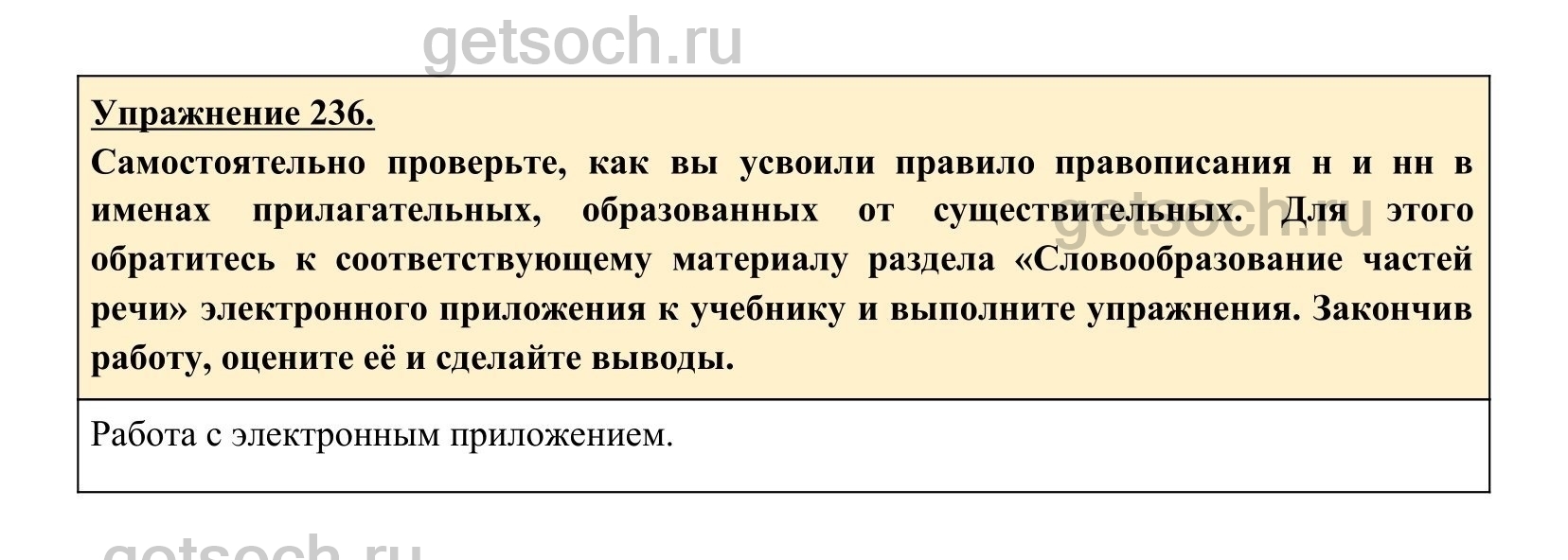 Рассмотрим ответы на Упражнение 236 из учебника по русскому языку для 6 класса Разумовской