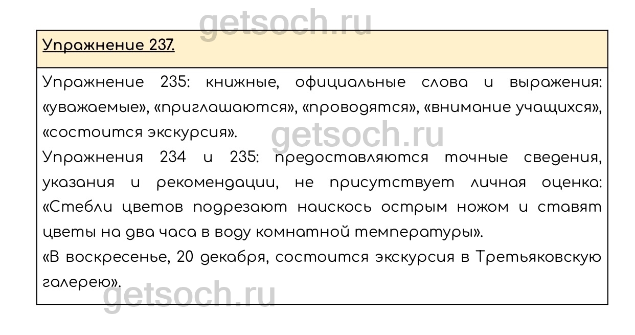 Рассмотрим ответы на Упражнение 237 из учебника по русскому языку для 6 класса Разумовской