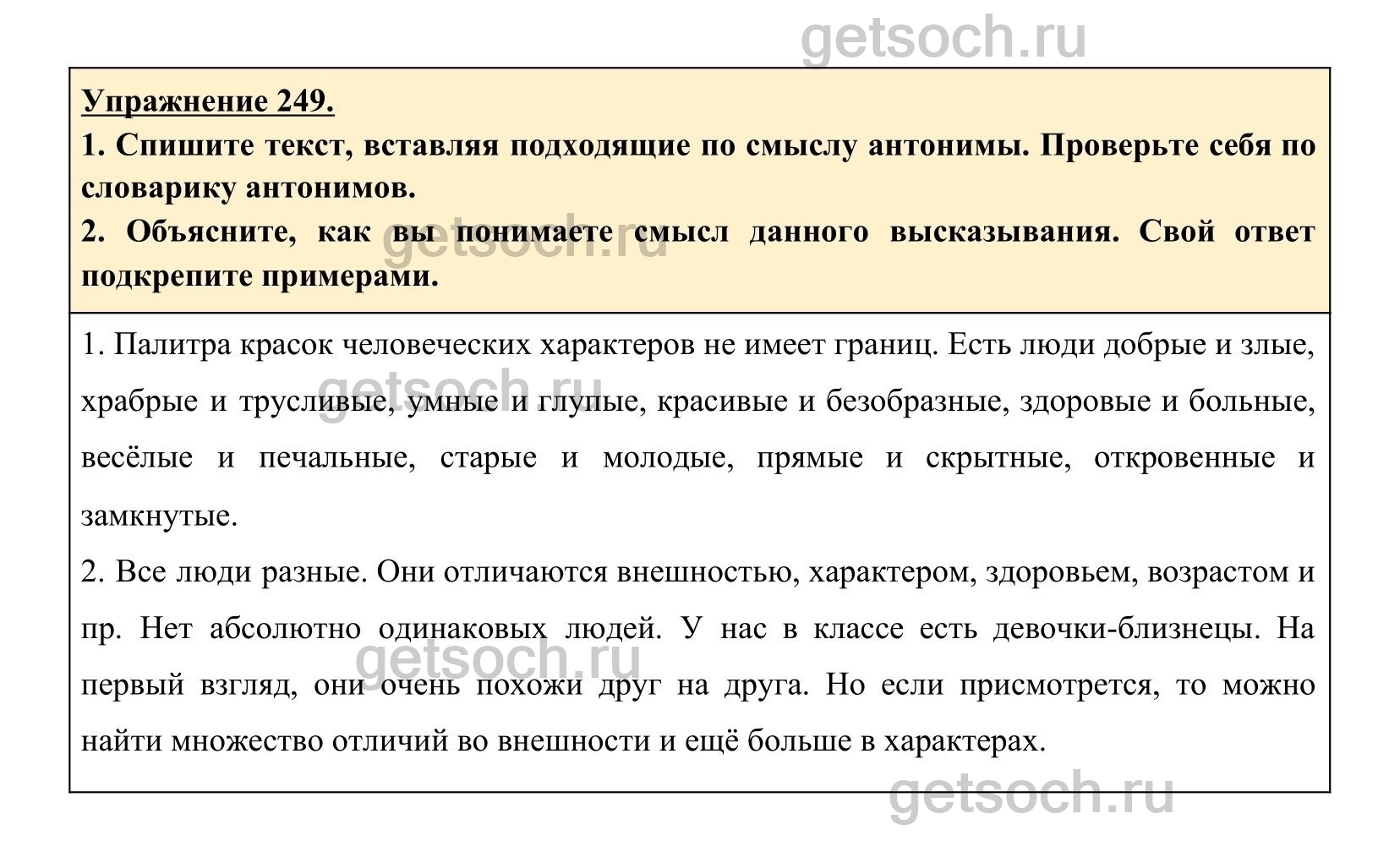 Рассмотрим ответы на Упражнение 249 из учебника по русскому языку для 6 класса Разумовской