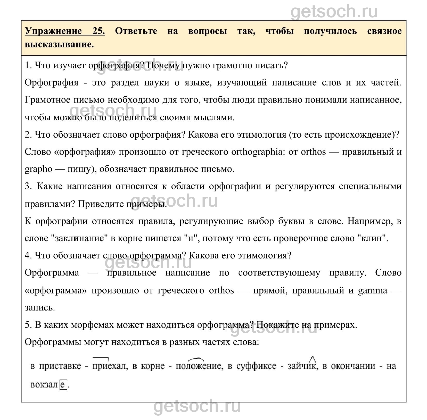 Рассмотрим ответы на Упражнение 25 из учебника по русскому языку для 6 класса Разумовской