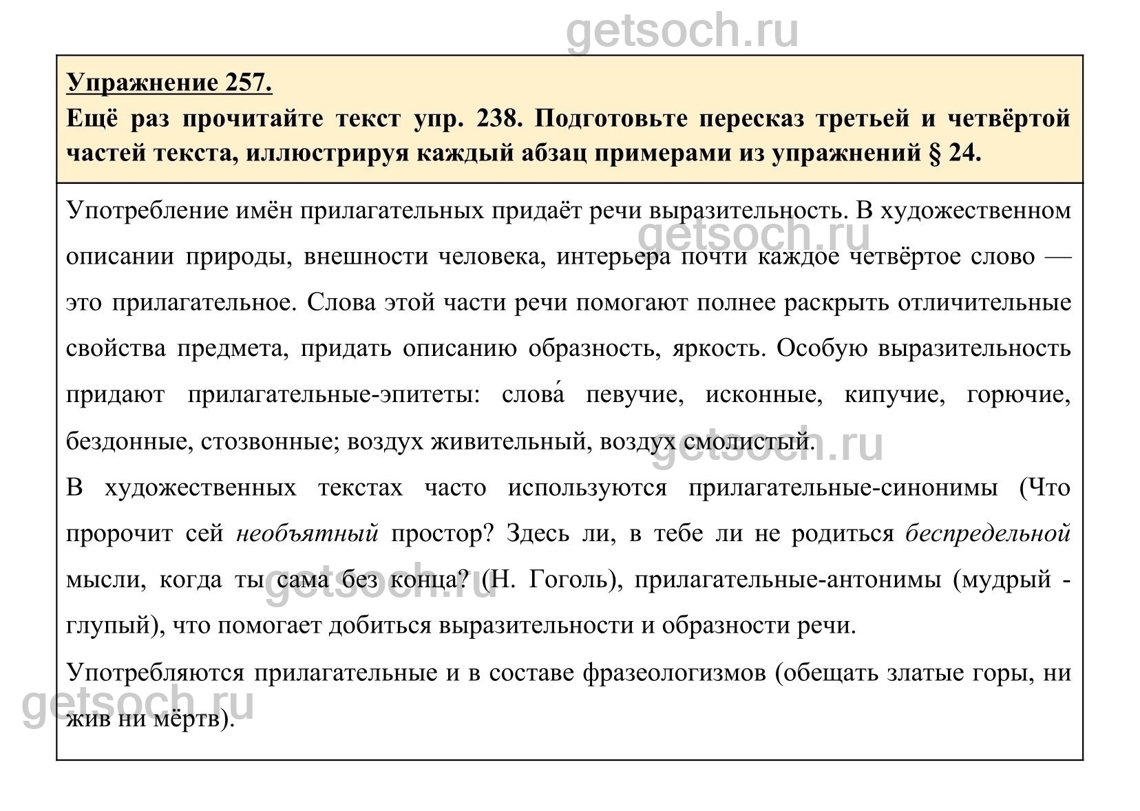 Рассмотрим ответы на Упражнение 257 из учебника по русскому языку для 6 класса Разумовской