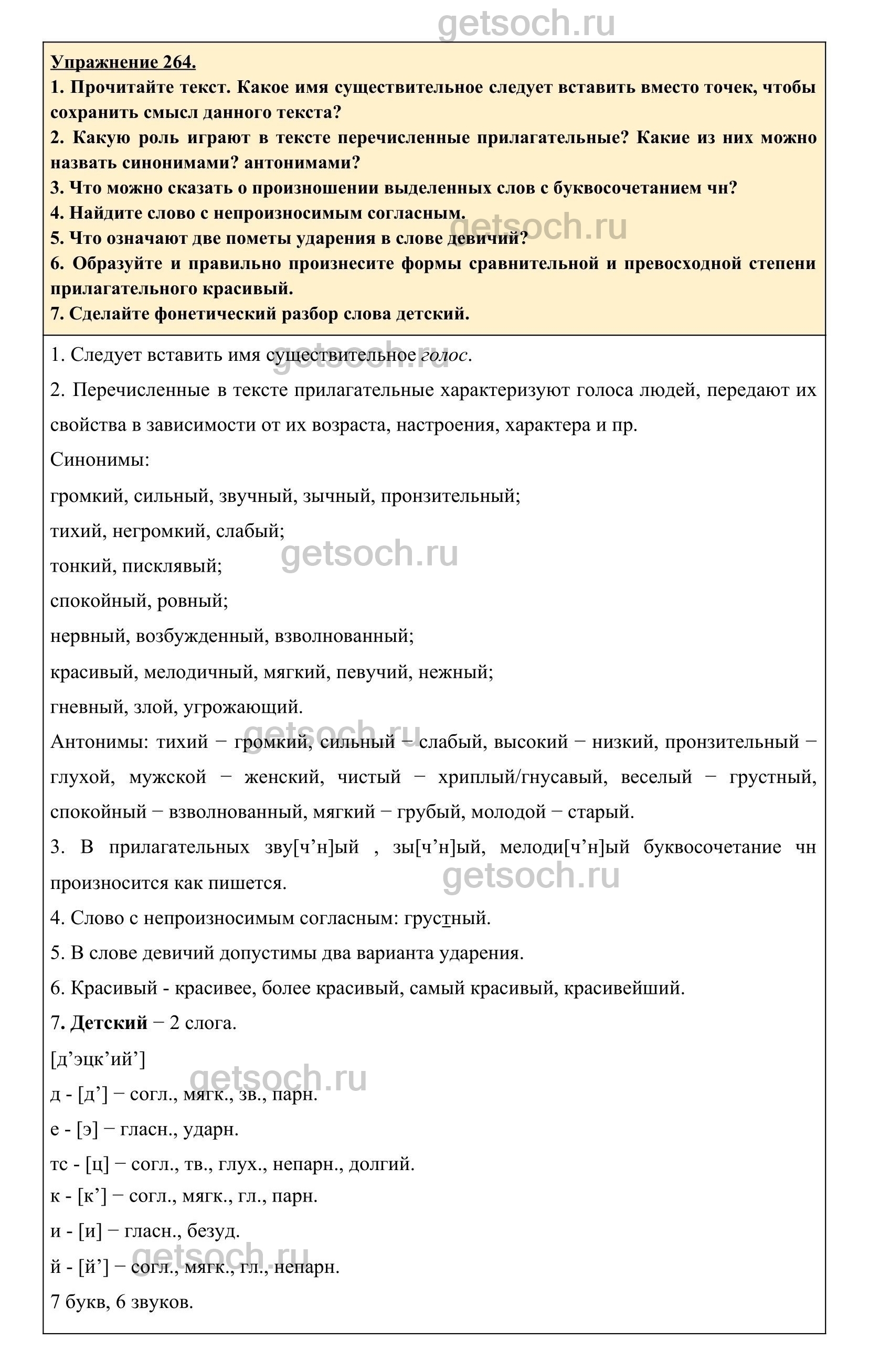 Рассмотрим ответы на Упражнение 264 из учебника по русскому языку для 6 класса Разумовской