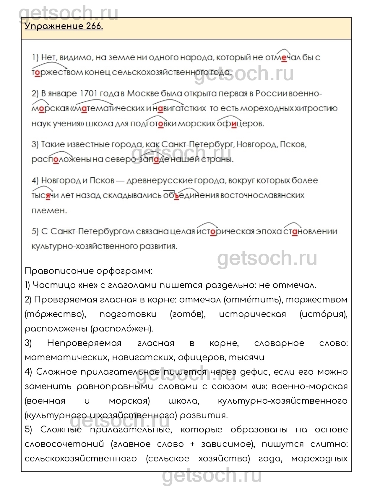 Рассмотрим ответы на Упражнение 266 из учебника по русскому языку для 6 класса Разумовской