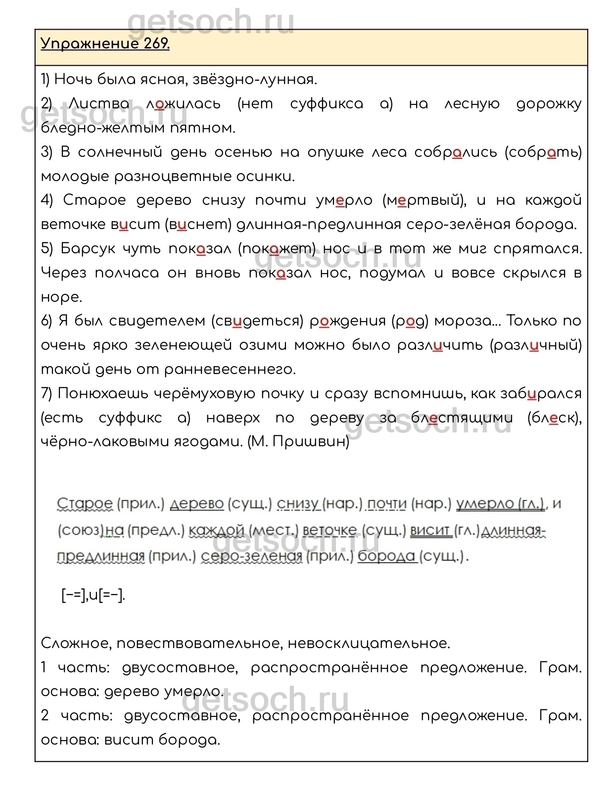 Рассмотрим ответы на Упражнение 269 из учебника по русскому языку для 6 класса Разумовской