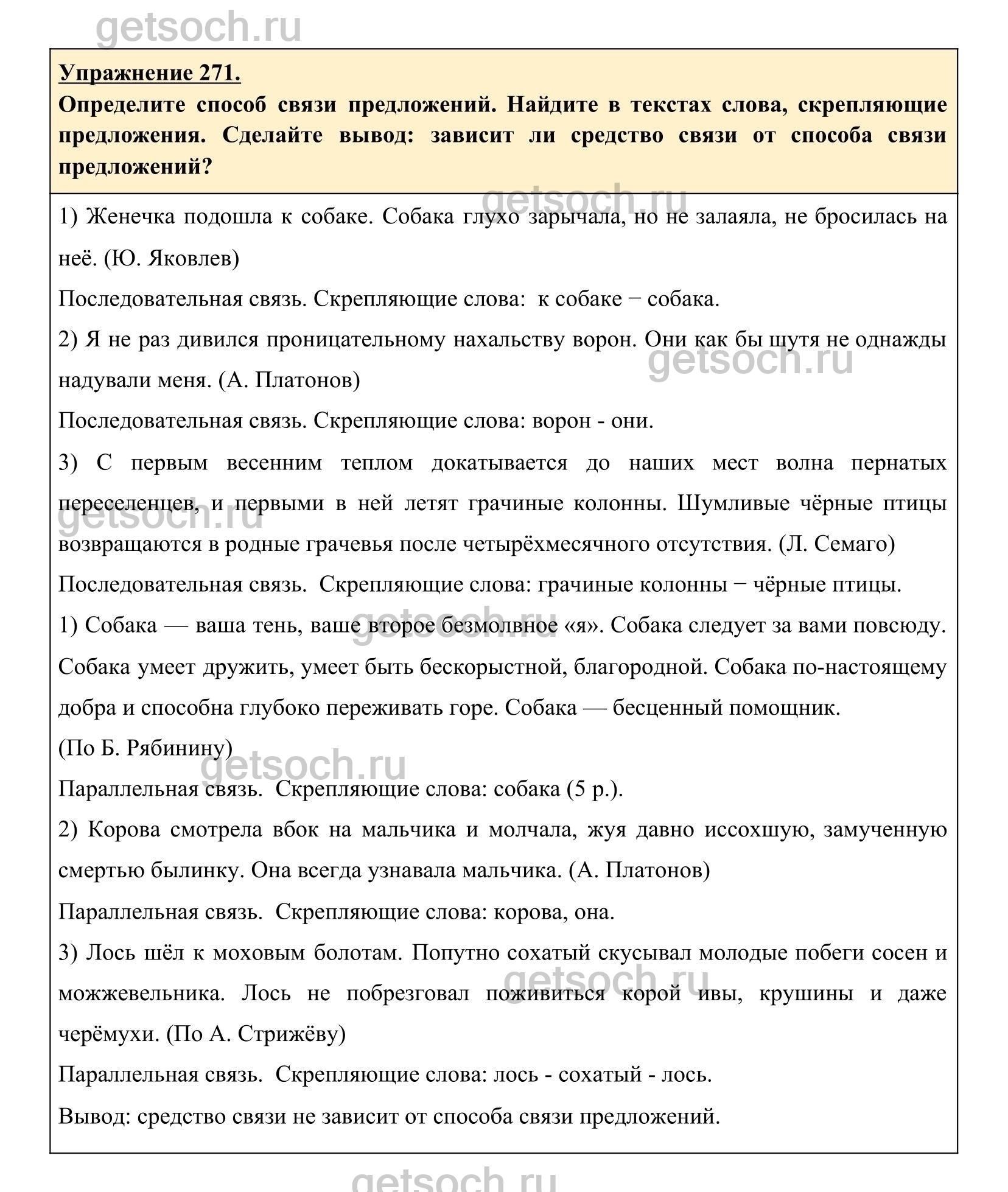 Рассмотрим ответы на Упражнение 271 из учебника по русскому языку для 6 класса Разумовской