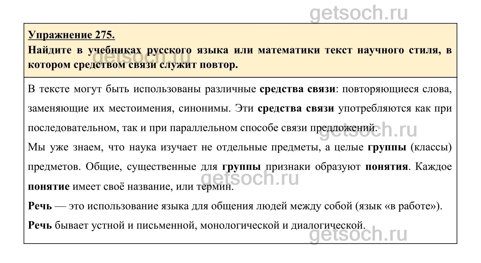 Рассмотрим ответы на Упражнение 275 из учебника по русскому языку для 6 класса Разумовской