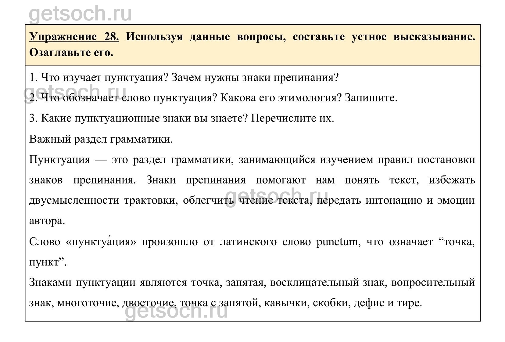 Рассмотрим ответы на Упражнение 28 из учебника по русскому языку для 6 класса Разумовской