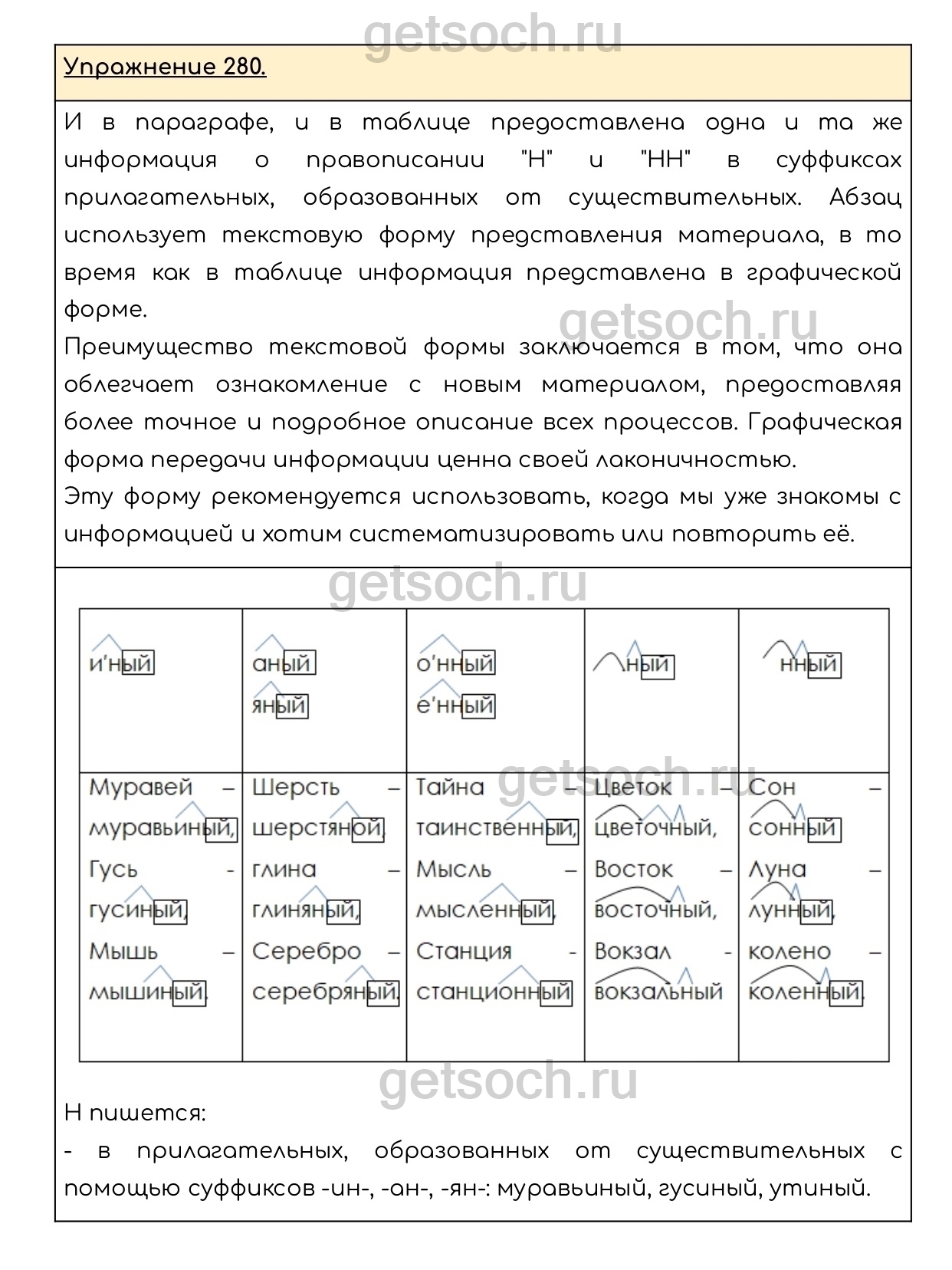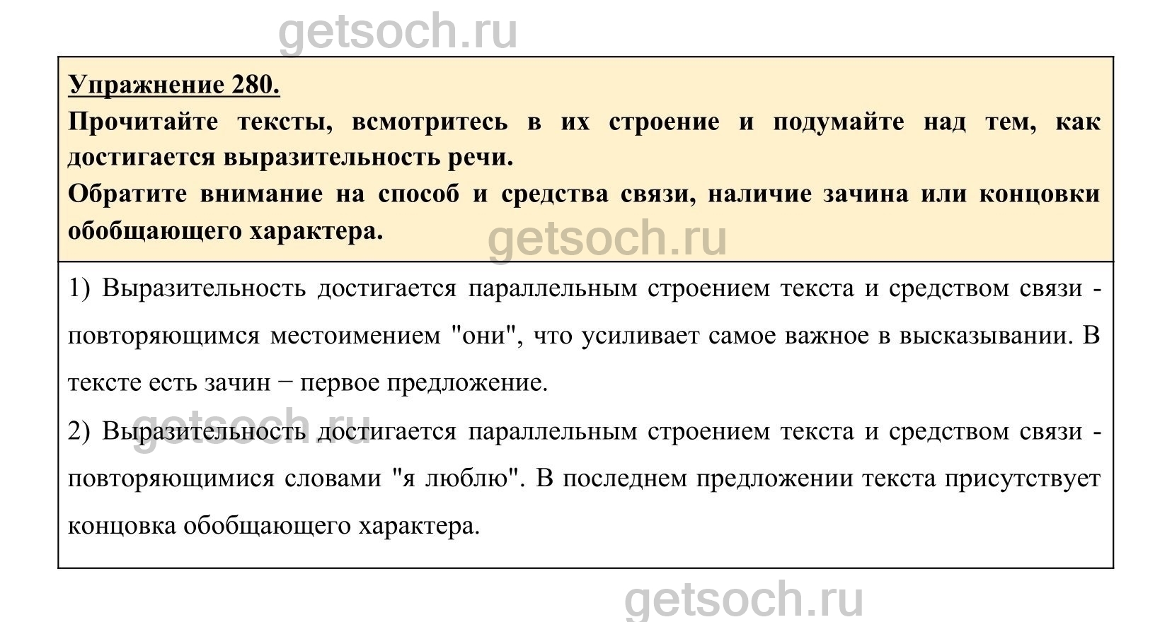 Рассмотрим ответы на Упражнение 280 из учебника по русскому языку для 6 класса Разумовской