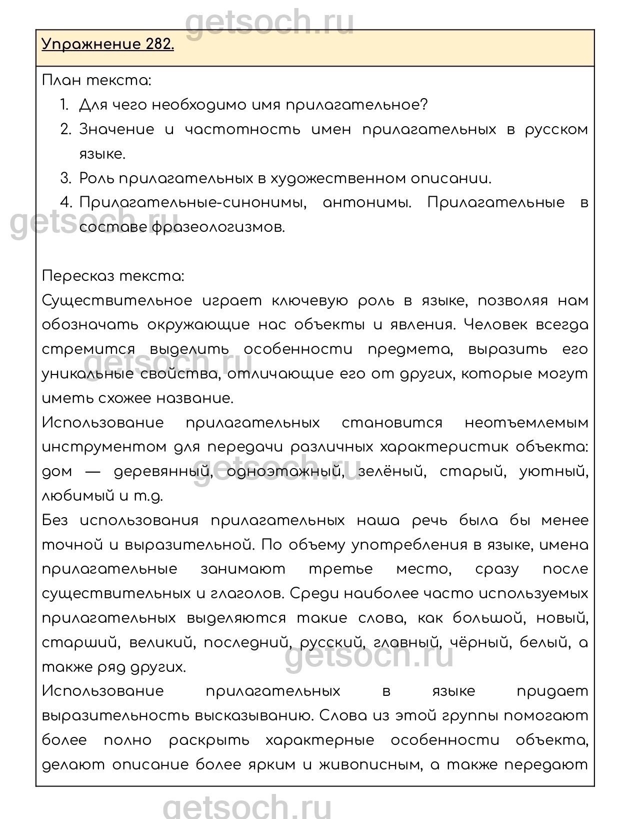 Рассмотрим ответы на Упражнение 282 из учебника по русскому языку для 6 класса Разумовской