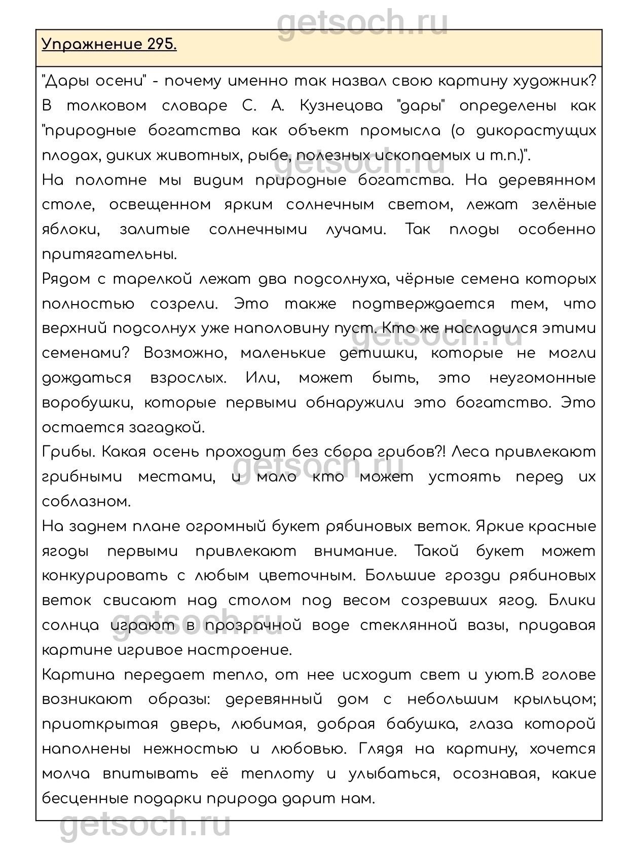 Рассмотрим ответы на Упражнение 295 из учебника по русскому языку для 6 класса Разумовской