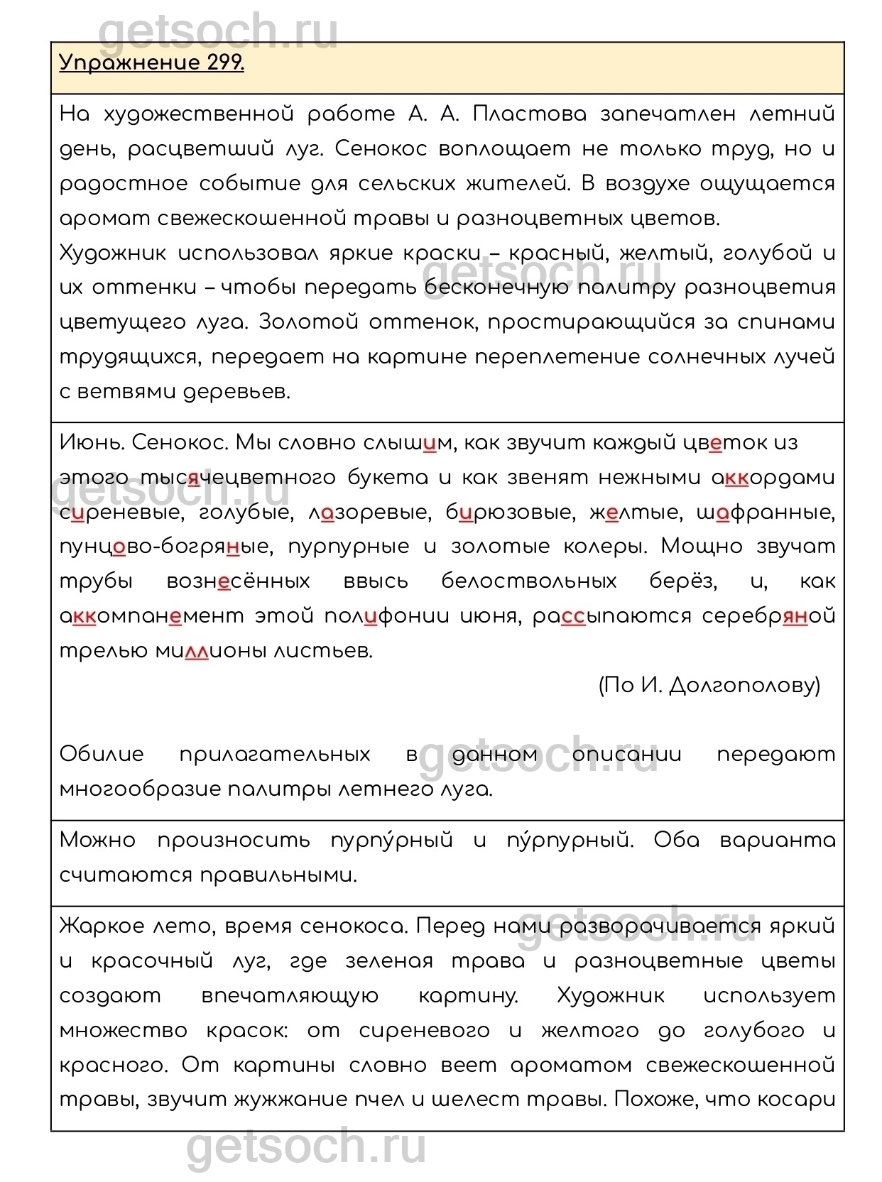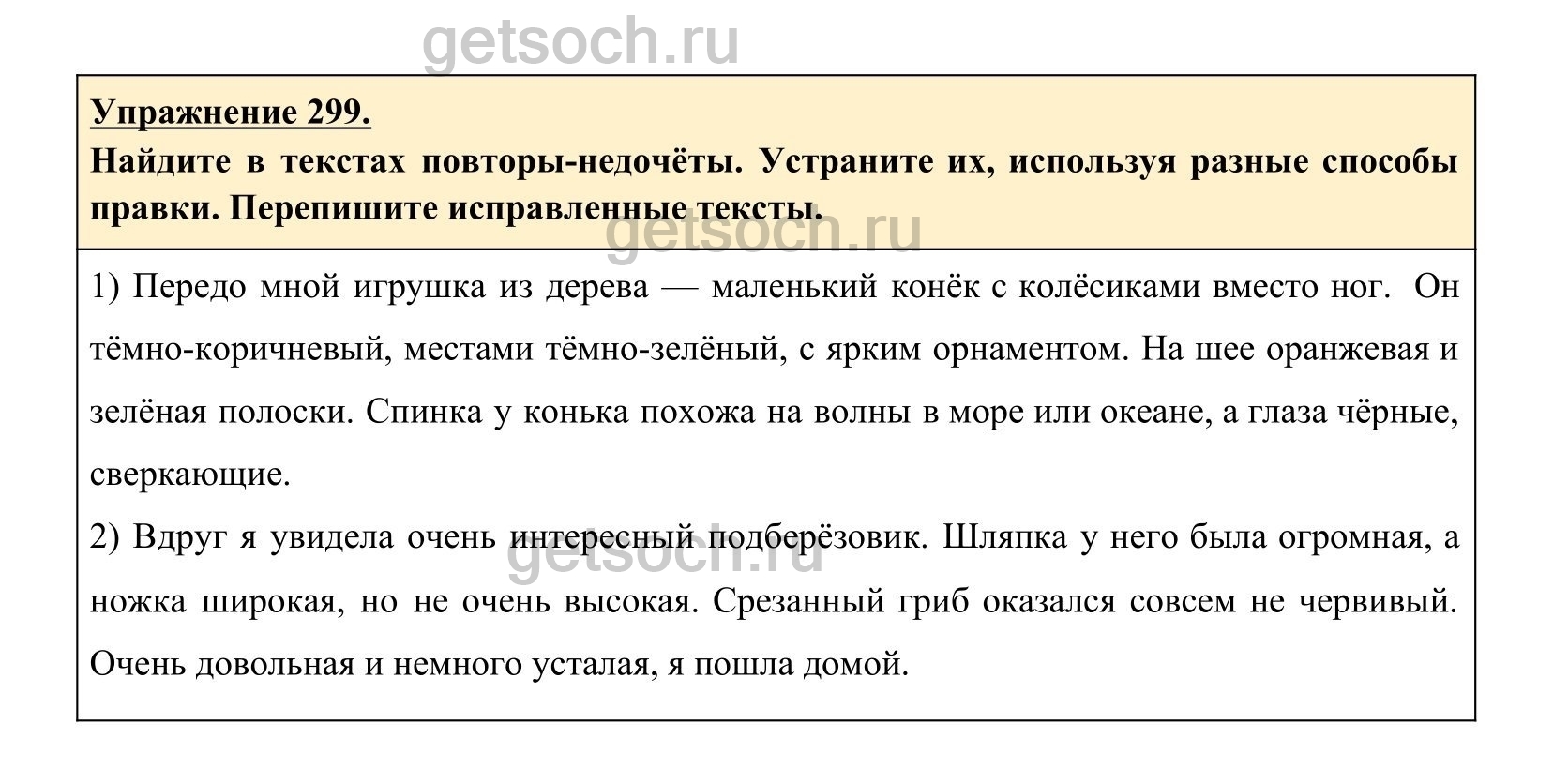 Рассмотрим ответы на Упражнение 299 из учебника по русскому языку для 6 класса Разумовской