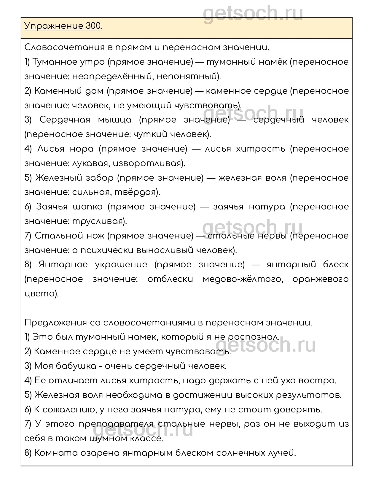 Рассмотрим ответы на Упражнение 300 из учебника по русскому языку для 6 класса Разумовской