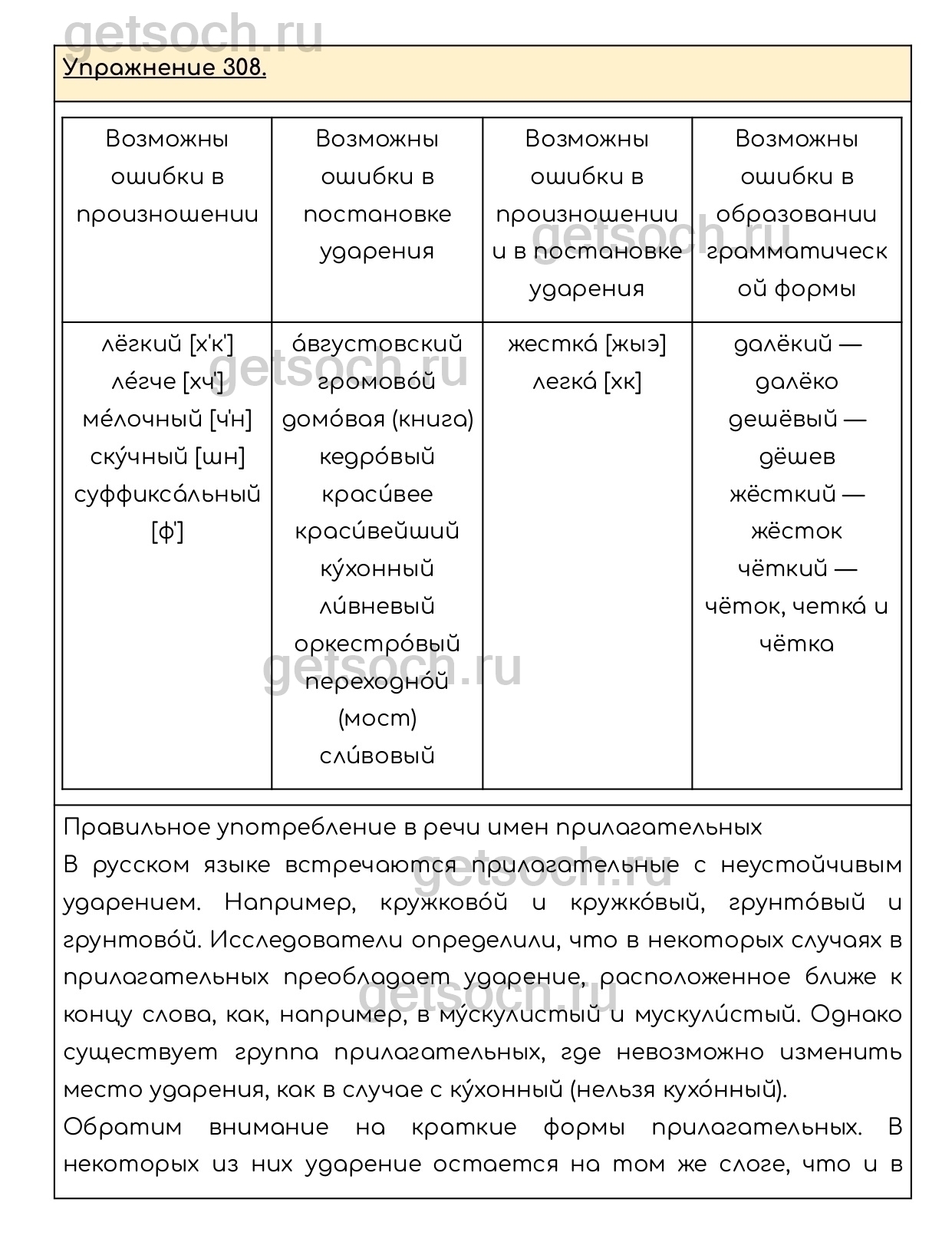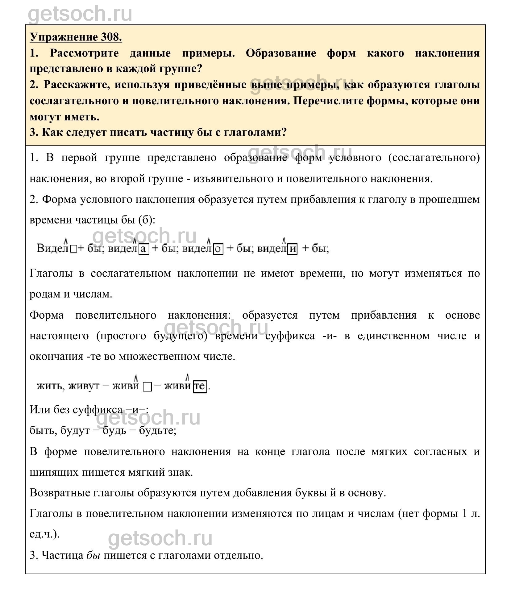 Рассмотрим ответы на Упражнение 308 из учебника по русскому языку для 6 класса Разумовской