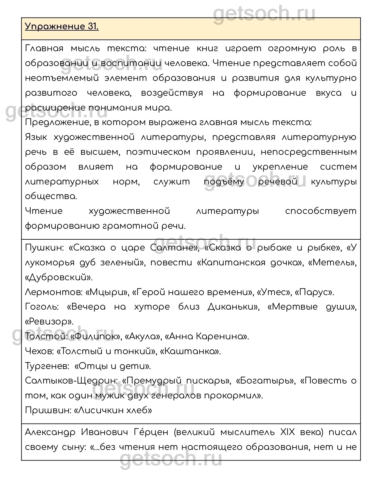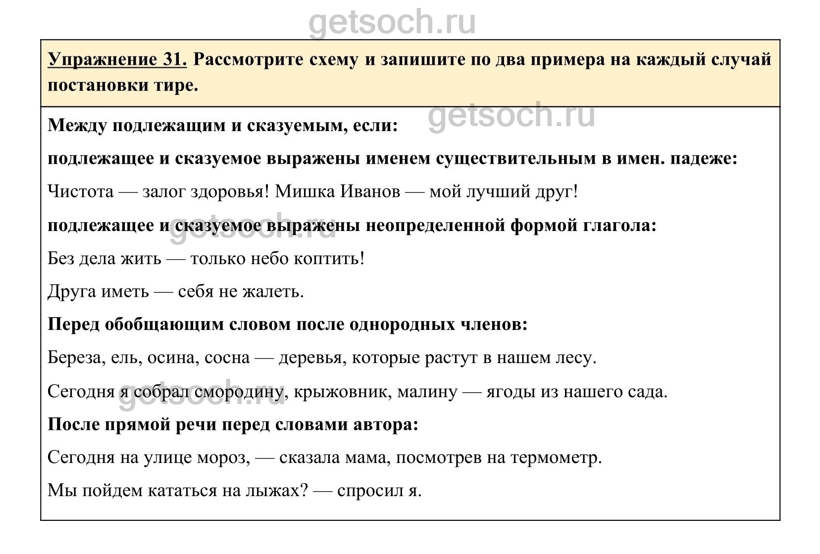 Рассмотрим ответы на Упражнение 31 из учебника по русскому языку для 6 класса Разумовской