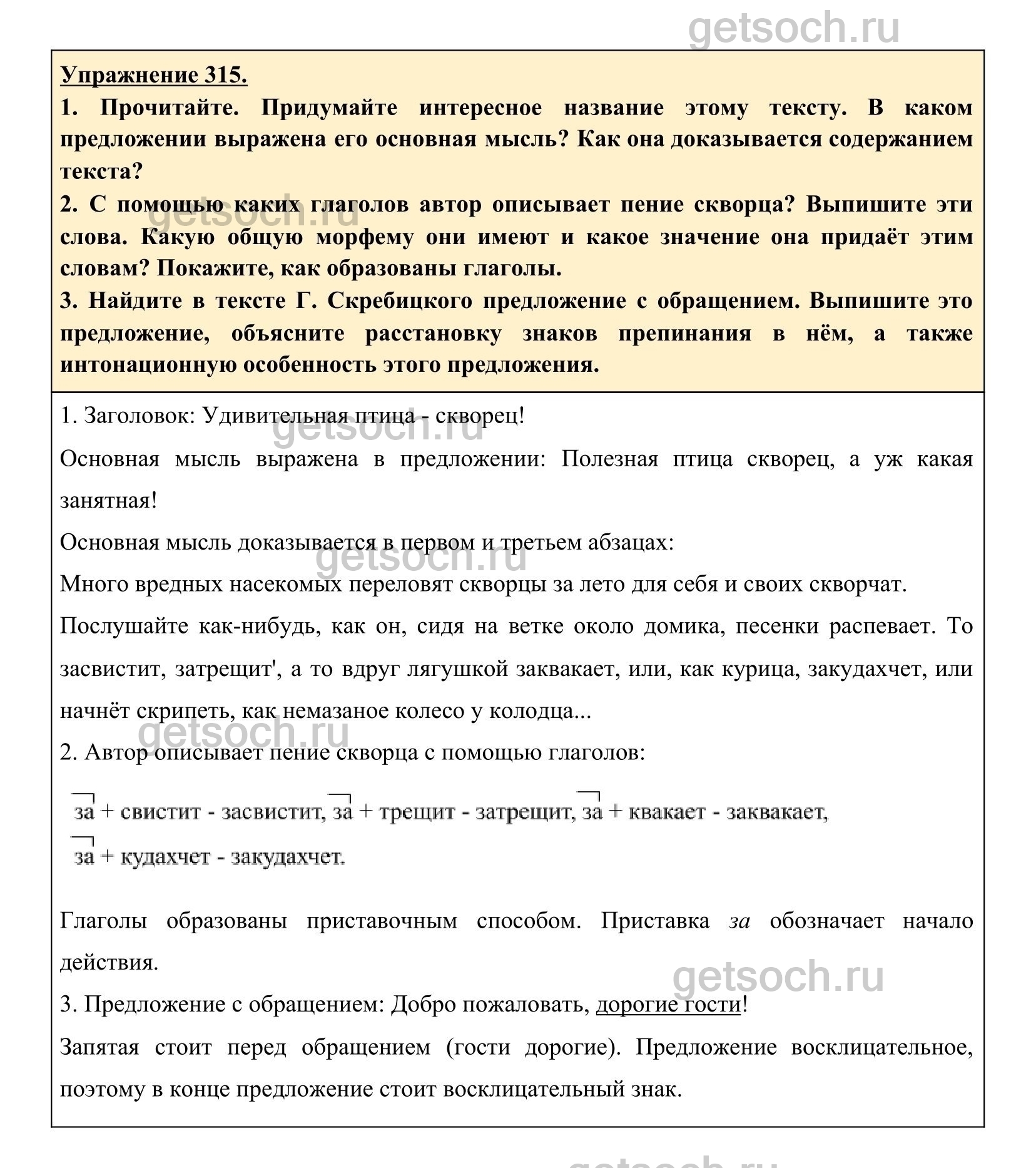 Рассмотрим ответы на Упражнение 315 из учебника по русскому языку для 6 класса Разумовской