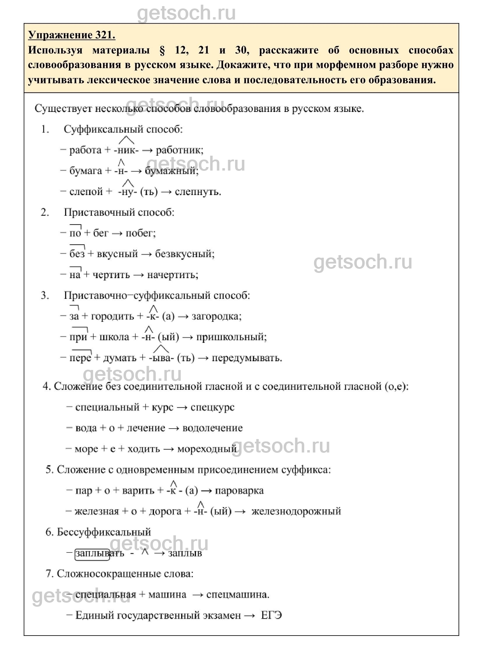 Рассмотрим ответы на Упражнение 321 из учебника по русскому языку для 6 класса Разумовской