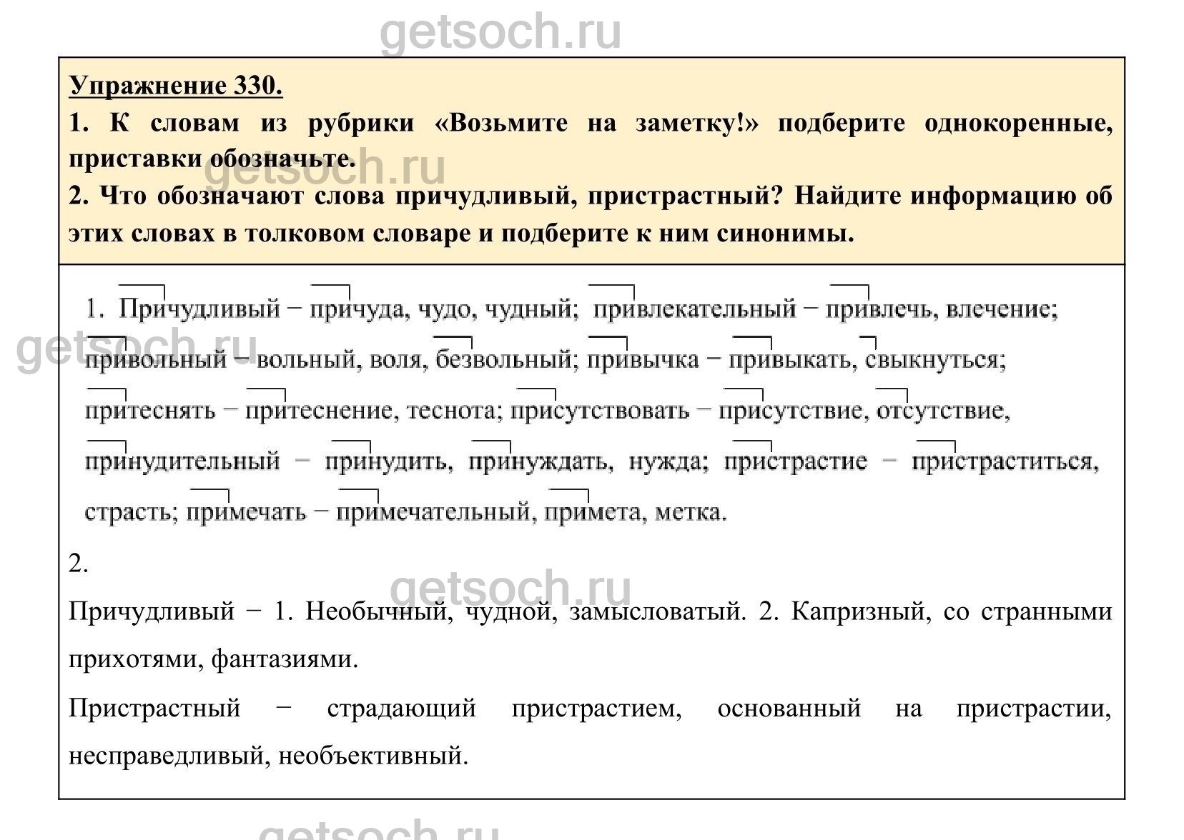Рассмотрим ответы на Упражнение 330 из учебника по русскому языку для 6 класса Разумовской