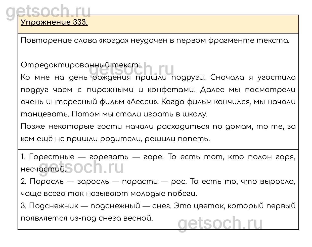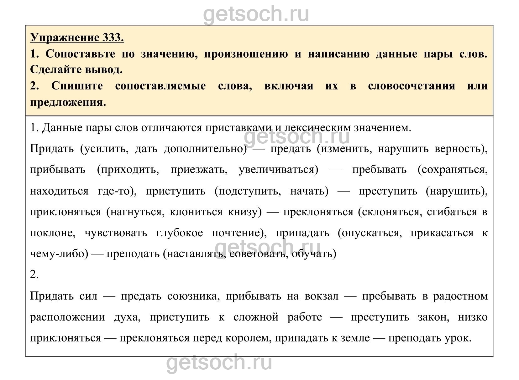 Рассмотрим ответы на Упражнение 333 из учебника по русскому языку для 6 класса Разумовской