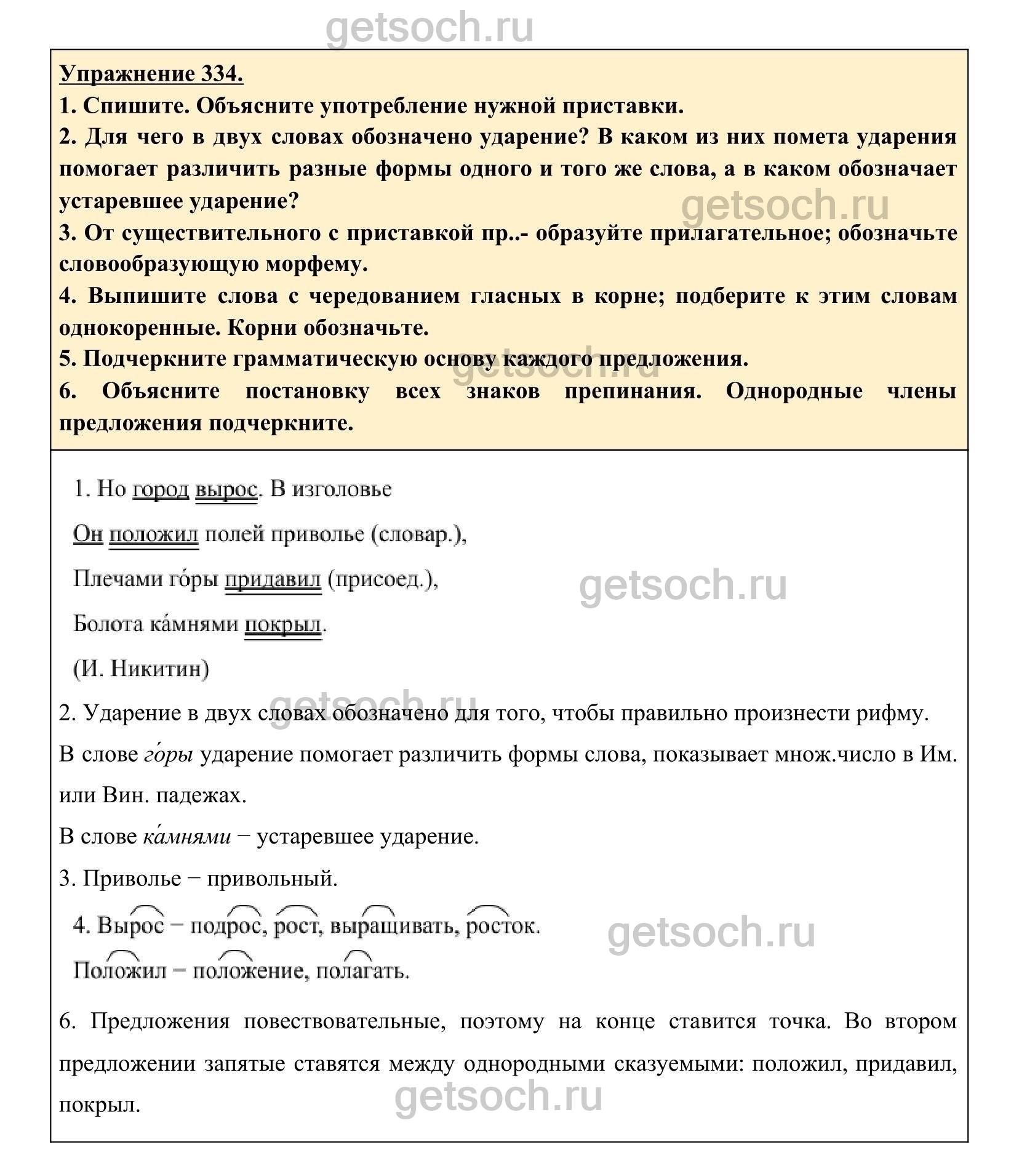 Рассмотрим ответы на Упражнение 334 из учебника по русскому языку для 6 класса Разумовской