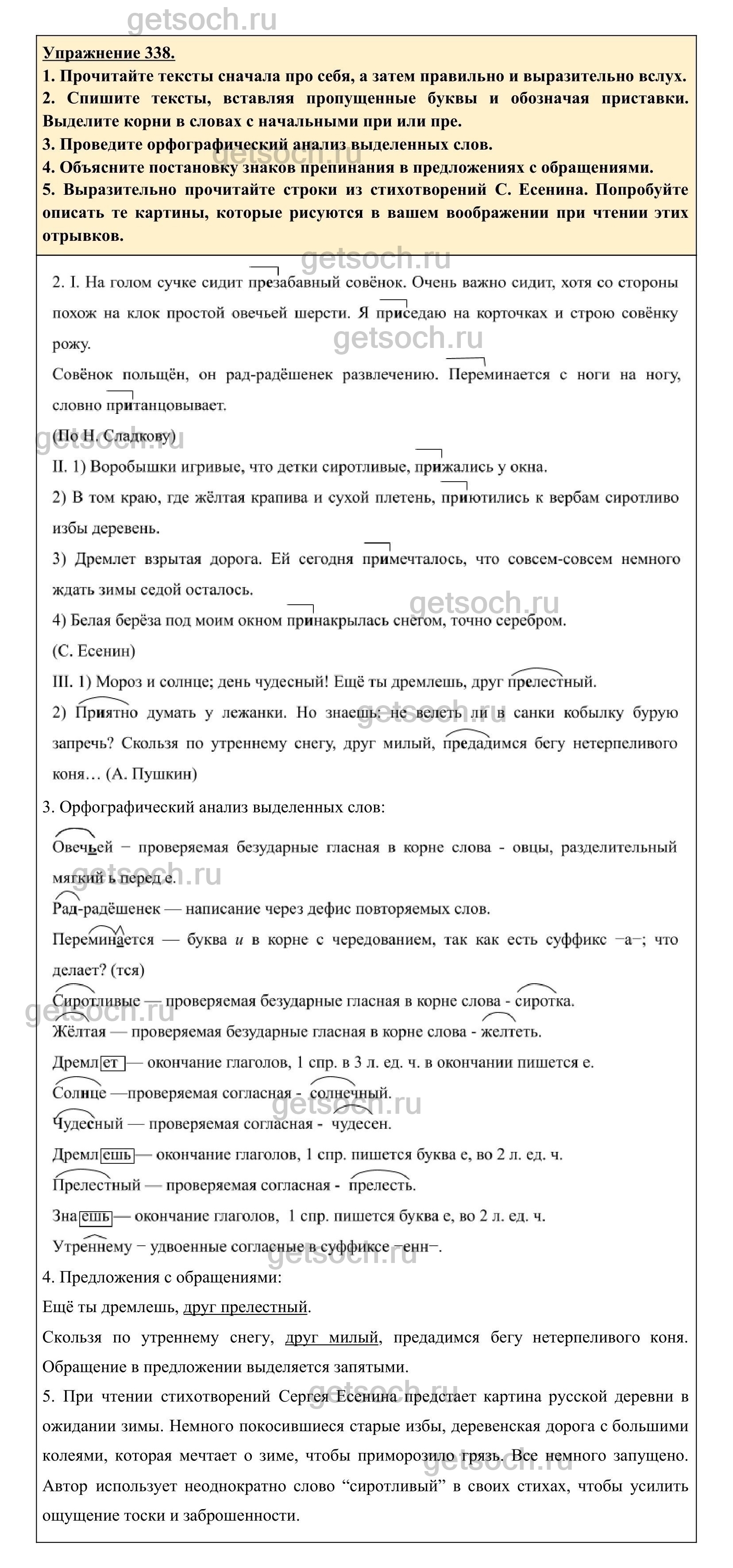 Рассмотрим ответы на Упражнение 338 из учебника по русскому языку для 6 класса Разумовской