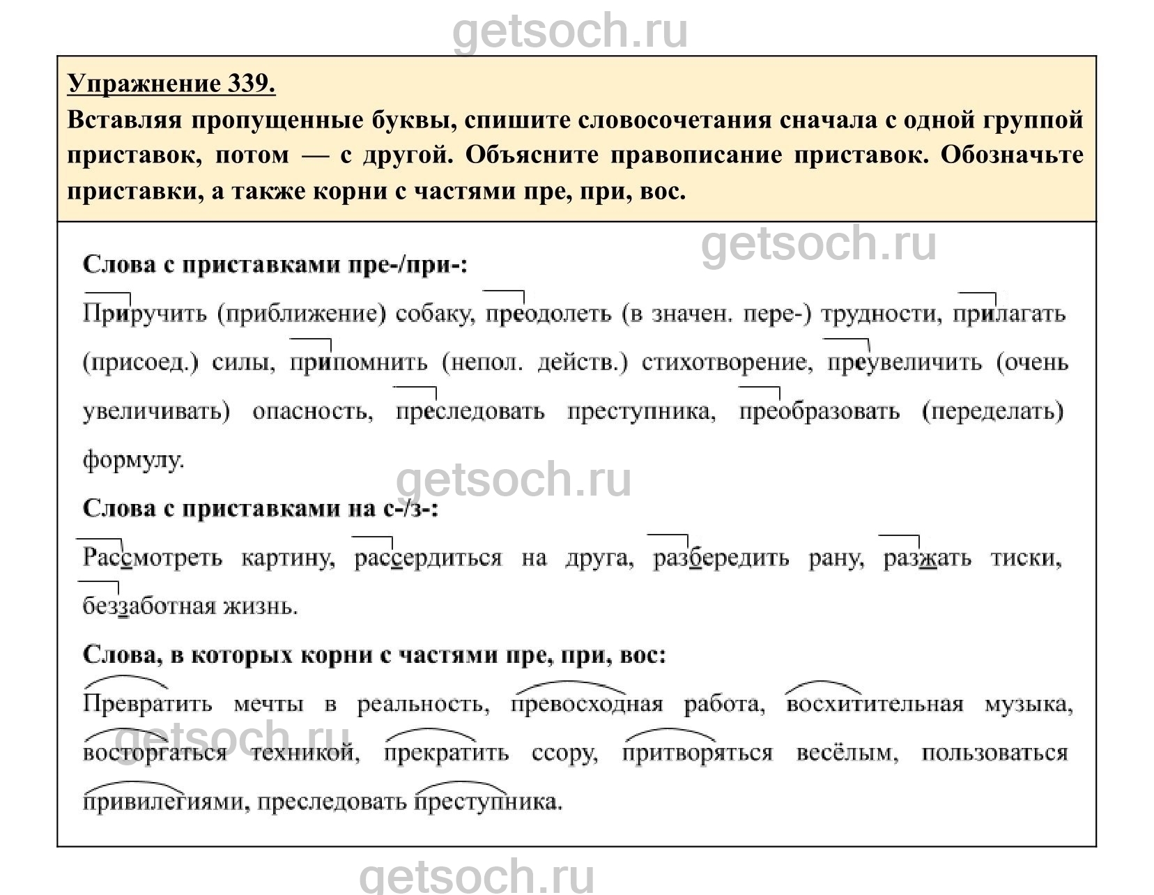 Рассмотрим ответы на Упражнение 339 из учебника по русскому языку для 6 класса Разумовской