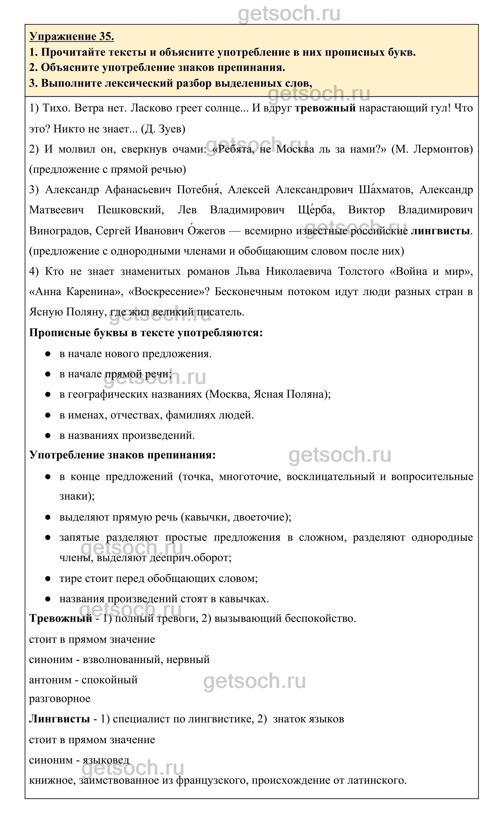 Рассмотрим ответы на Упражнение 35 из учебника по русскому языку для 6 класса Разумовской