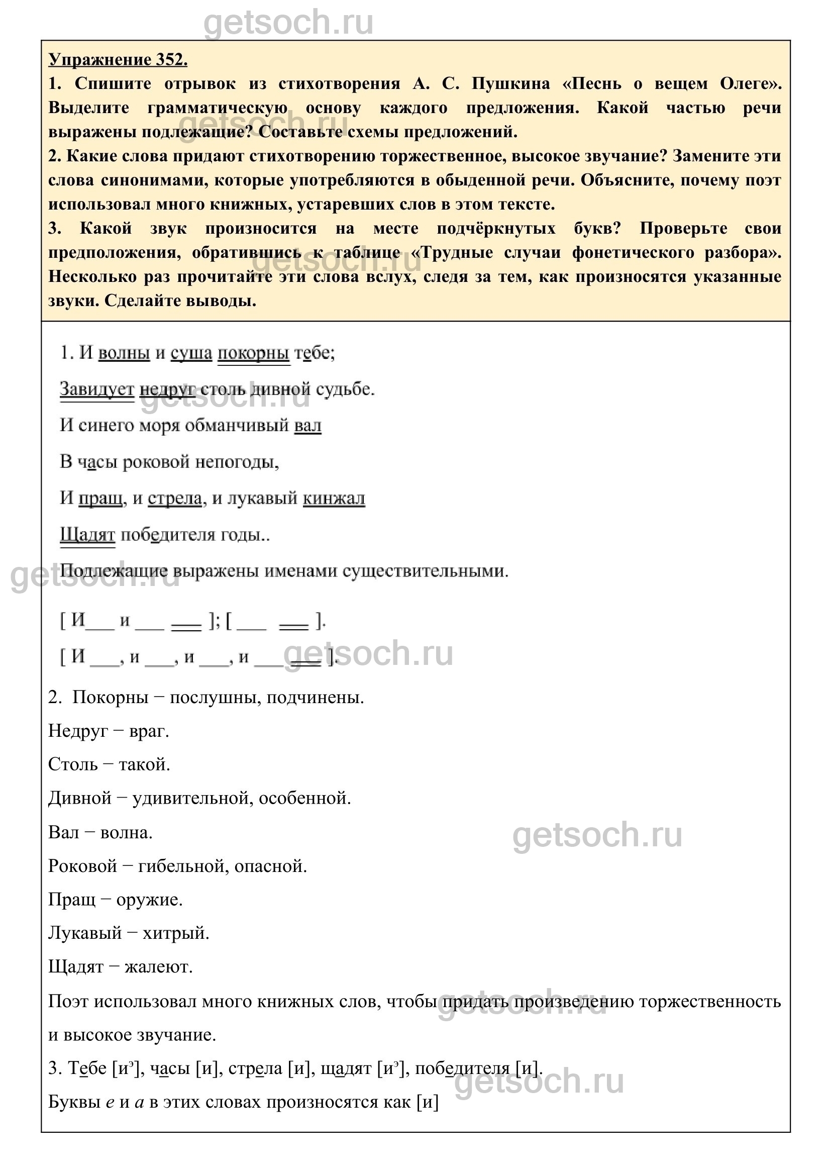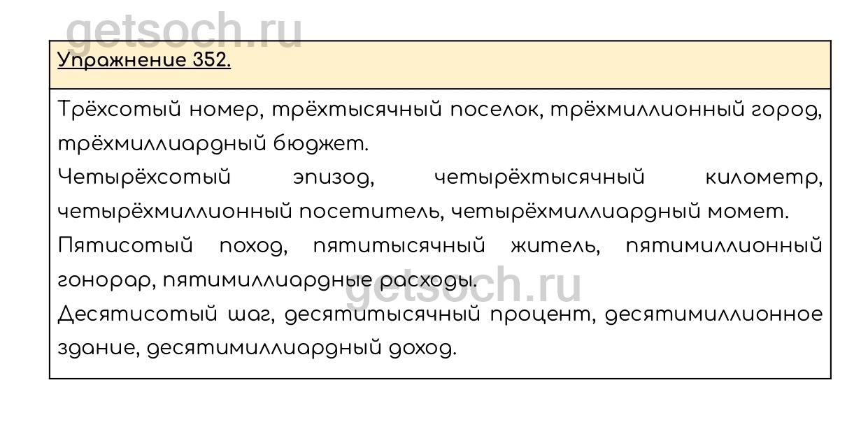 Рассмотрим ответы на Упражнение 352 из учебника по русскому языку для 6 класса Разумовской