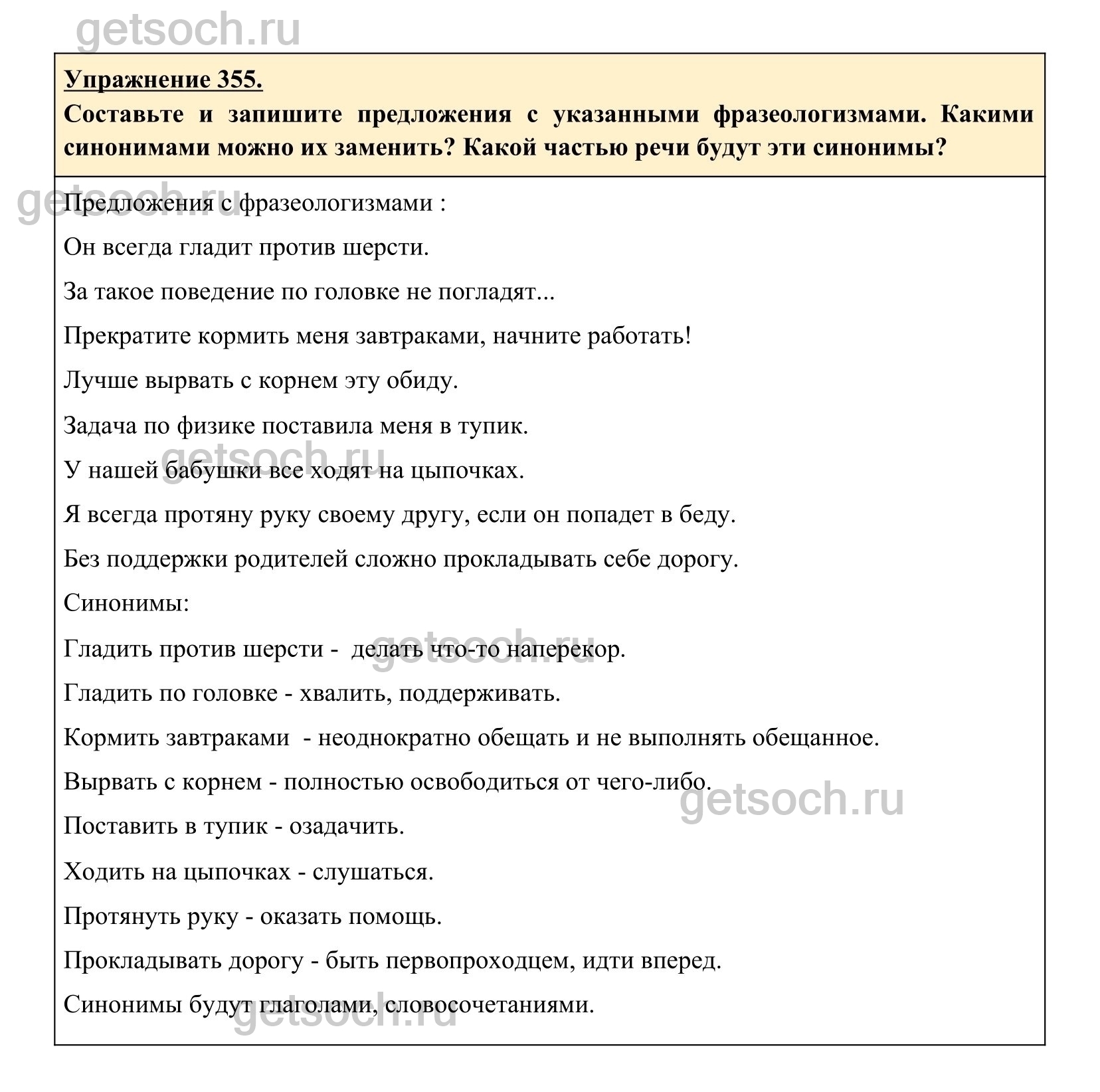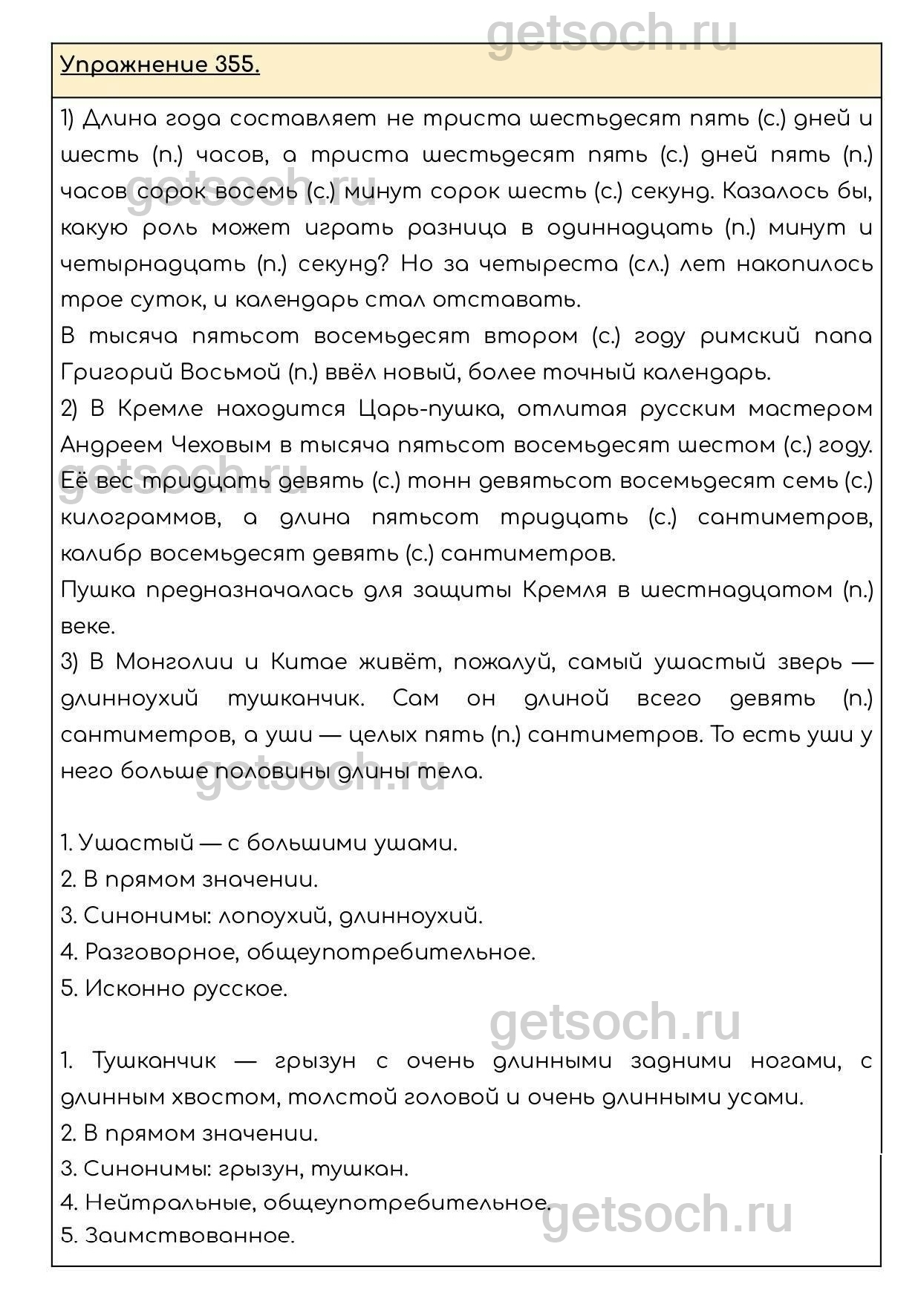 Рассмотрим ответы на Упражнение 355 из учебника по русскому языку для 6 класса Разумовской
