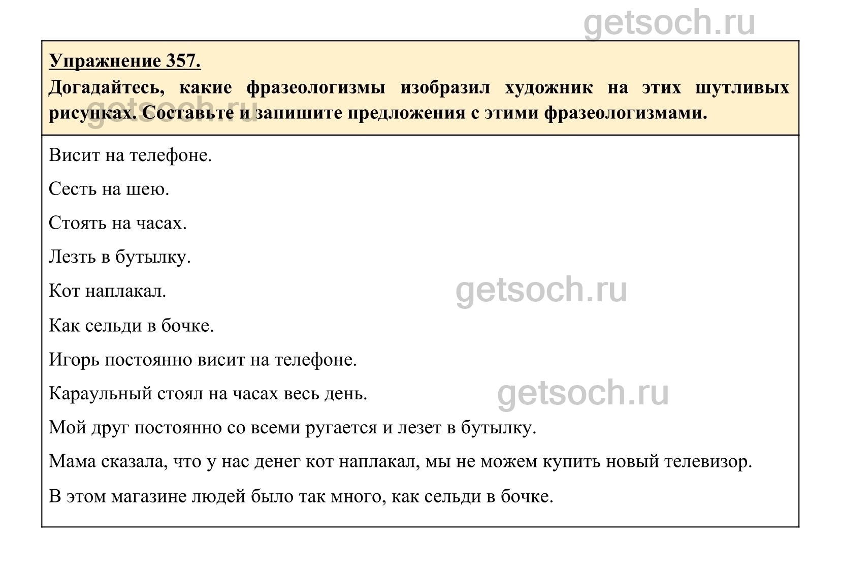 Рассмотрим ответы на Упражнение 357 из учебника по русскому языку для 6 класса Разумовской