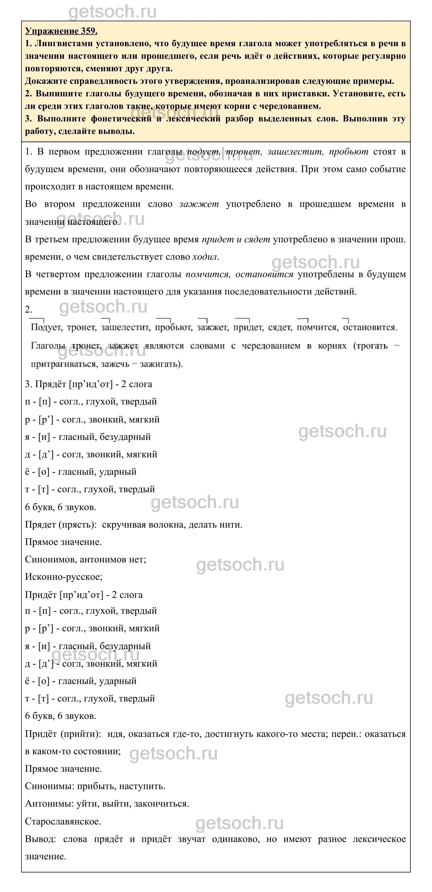 Рассмотрим ответы на Упражнение 359 из учебника по русскому языку для 6 класса Разумовской