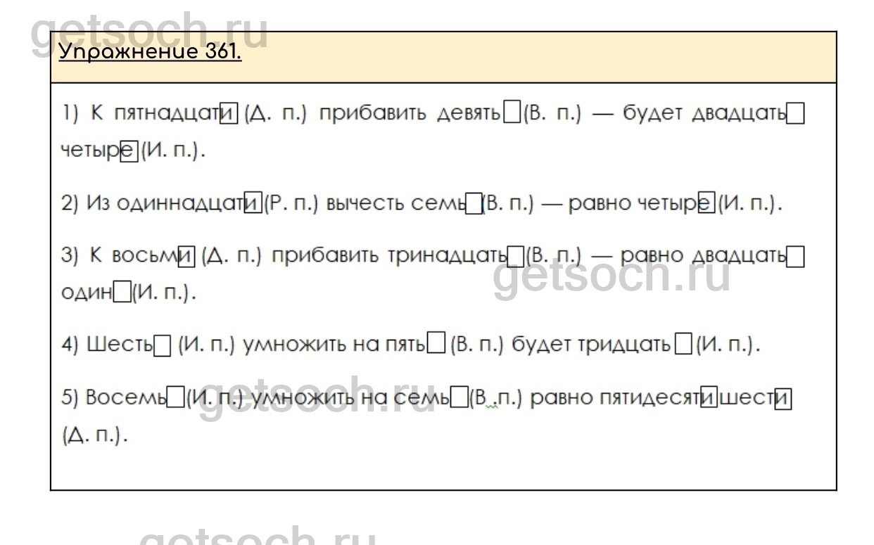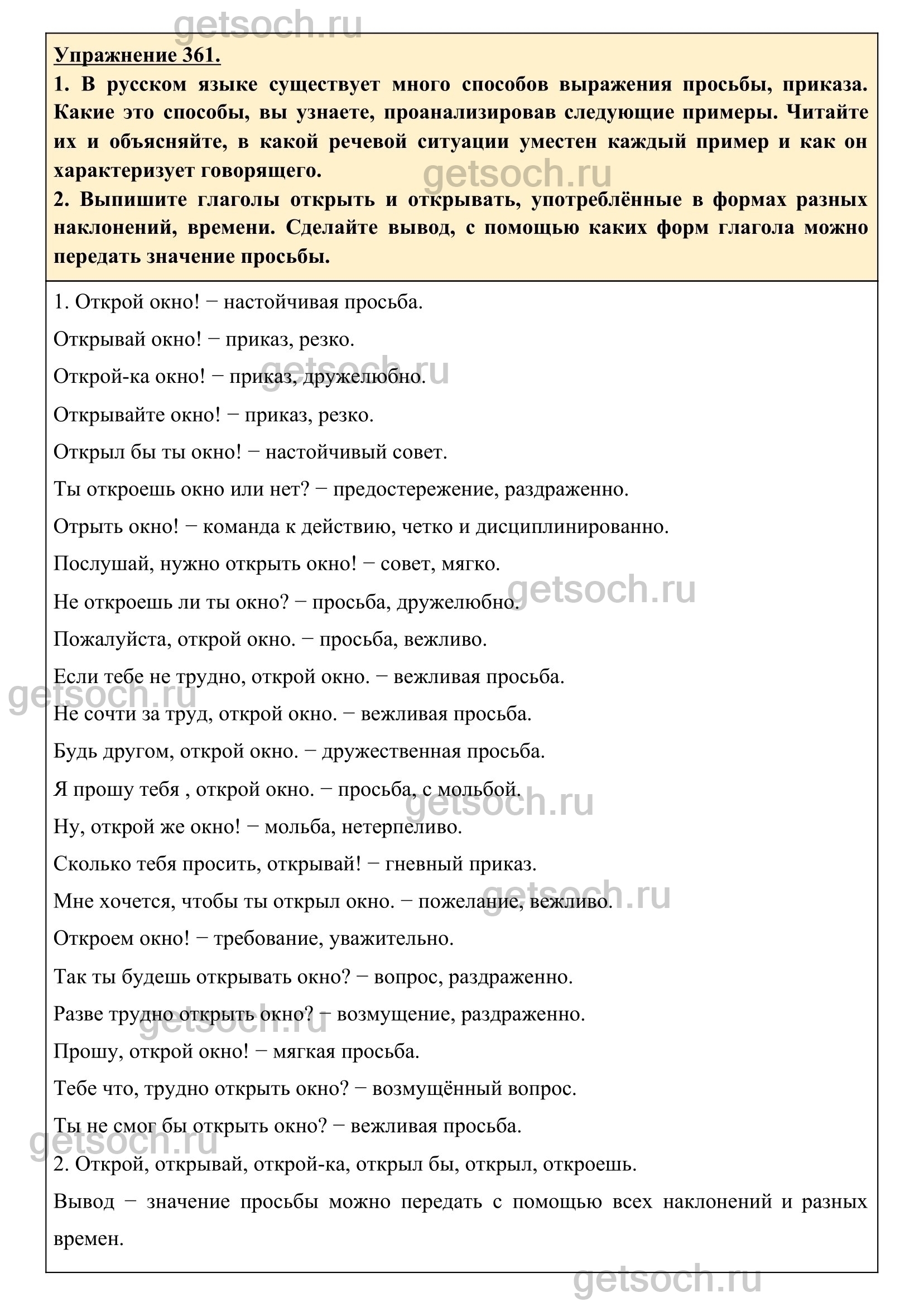 Рассмотрим ответы на Упражнение 361 из учебника по русскому языку для 6 класса Разумовской