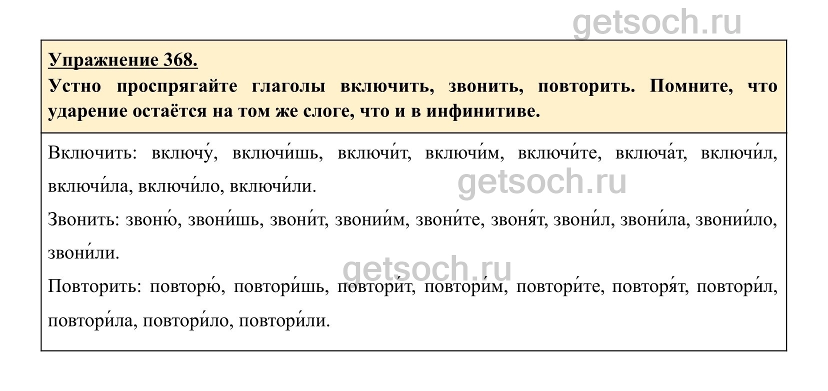 Устно проспрягайте глаголы включить, звонить, повторить. Помните, что