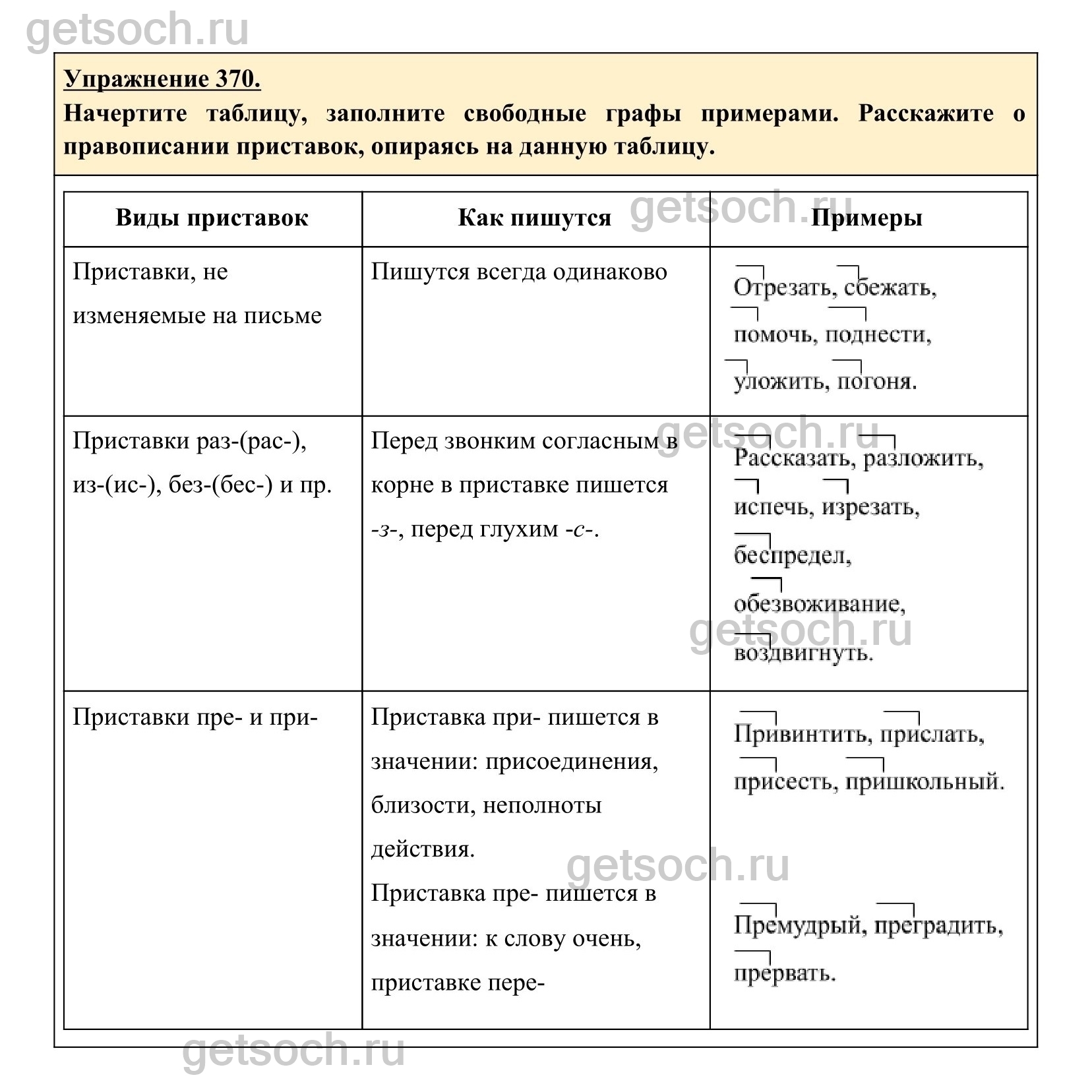 Рассмотрим ответы на Упражнение 370 из учебника по русскому языку для 6 класса Разумовской
