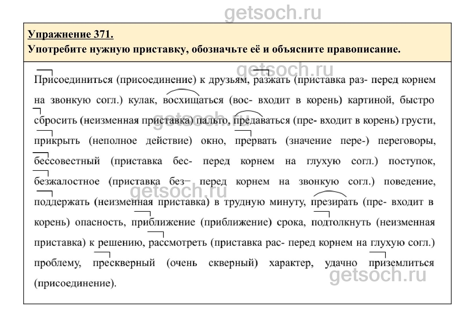 Рассмотрим ответы на Упражнение 371 из учебника по русскому языку для 6 класса Разумовской