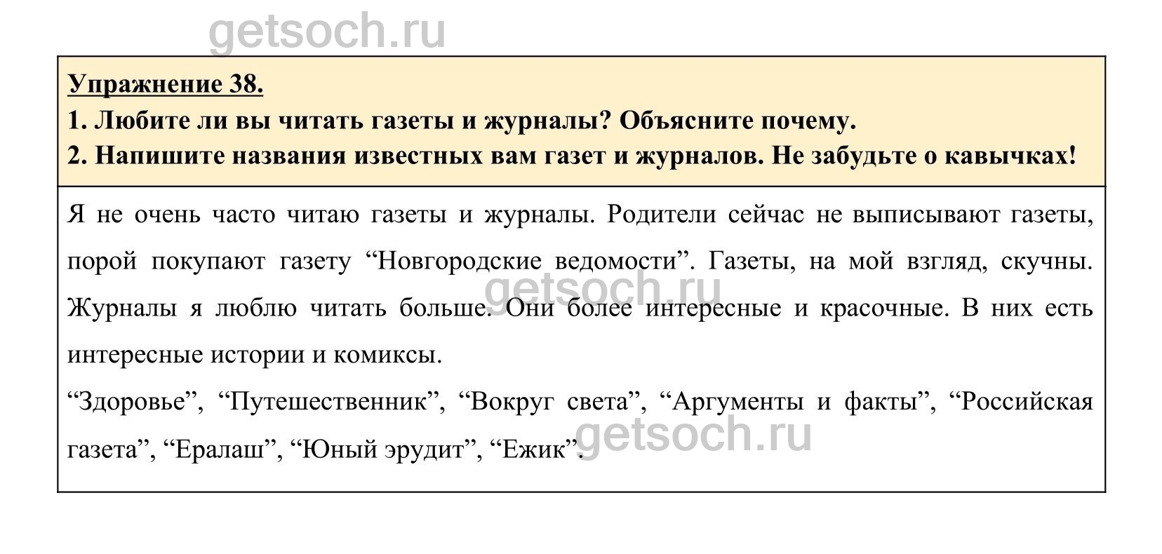 Рассмотрим ответы на Упражнение 38 из учебника по русскому языку для 6 класса Разумовской