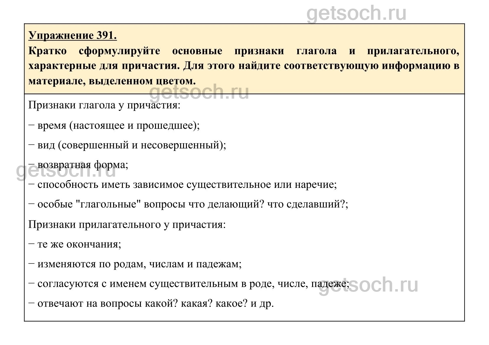 Рассмотрим ответы на Упражнение 391 из учебника по русскому языку для 6 класса Разумовской