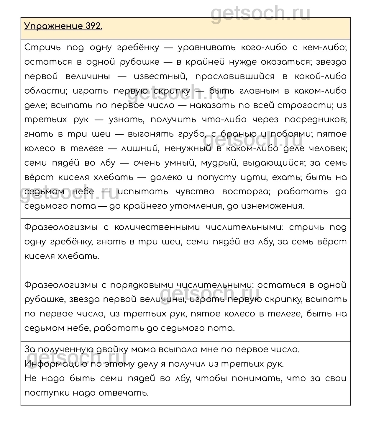 Рассмотрим ответы на Упражнение 392 из учебника по русскому языку для 6 класса Разумовской