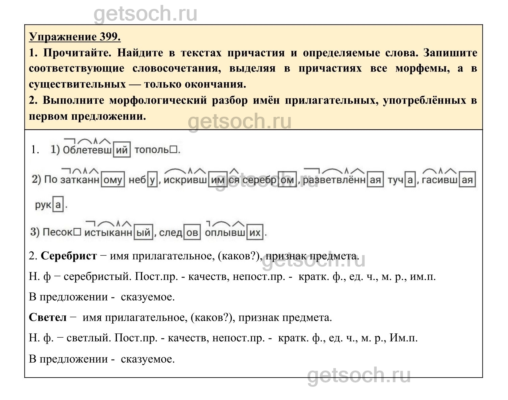 Рассмотрим ответы на Упражнение 399 из учебника по русскому языку для 6 класса Разумовской