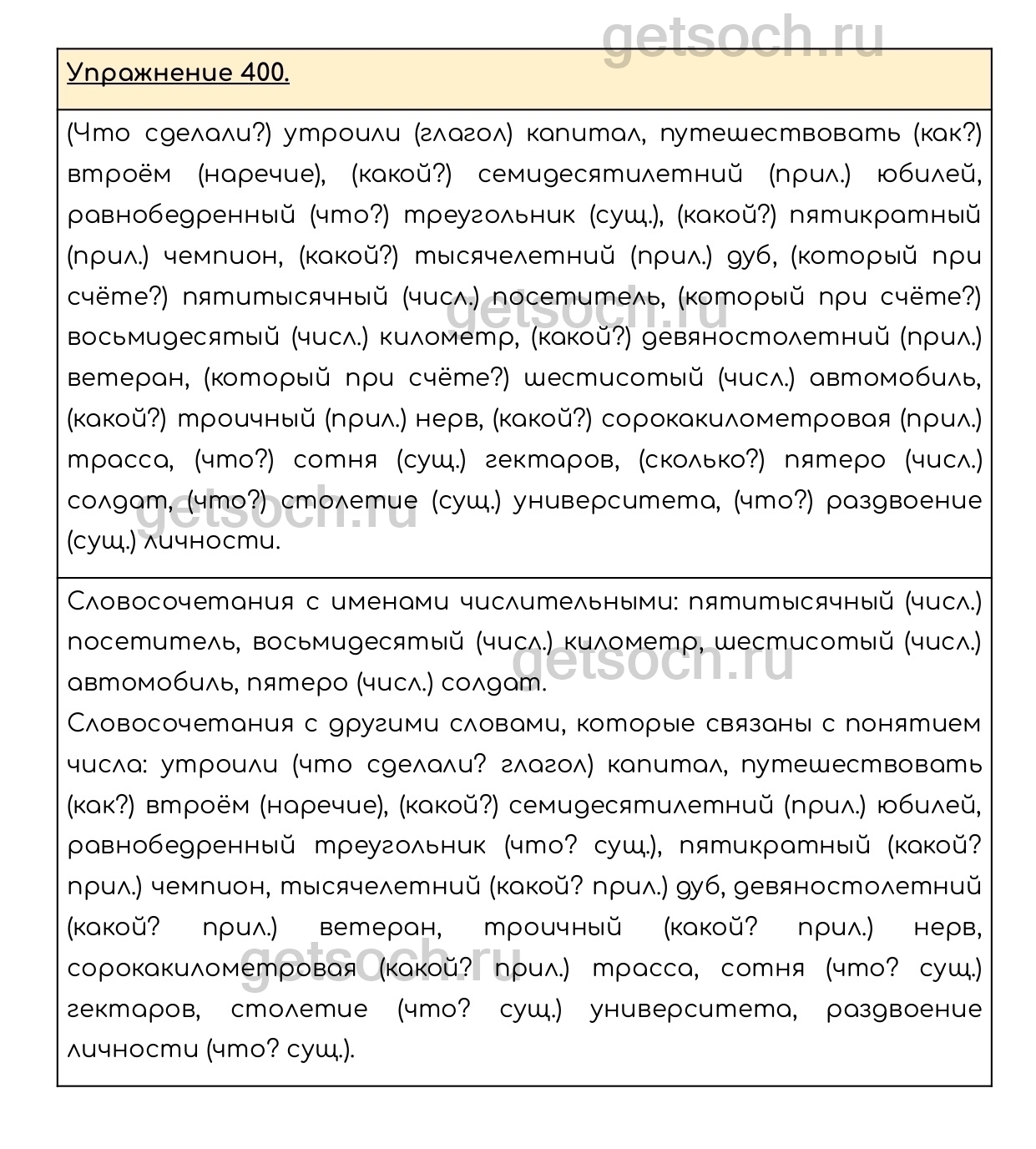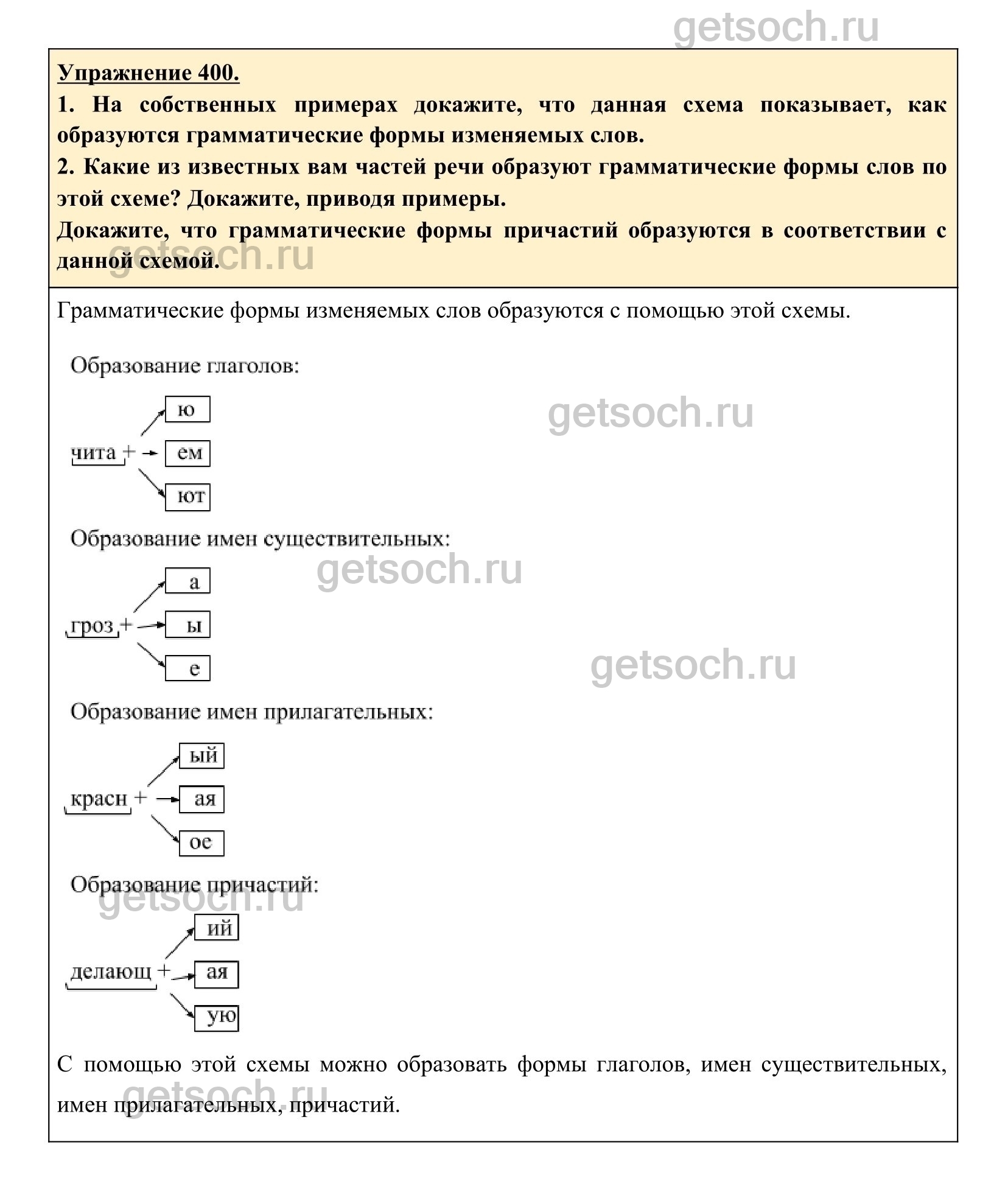 Рассмотрим ответы на Упражнение 400 из учебника по русскому языку для 6 класса Разумовской
