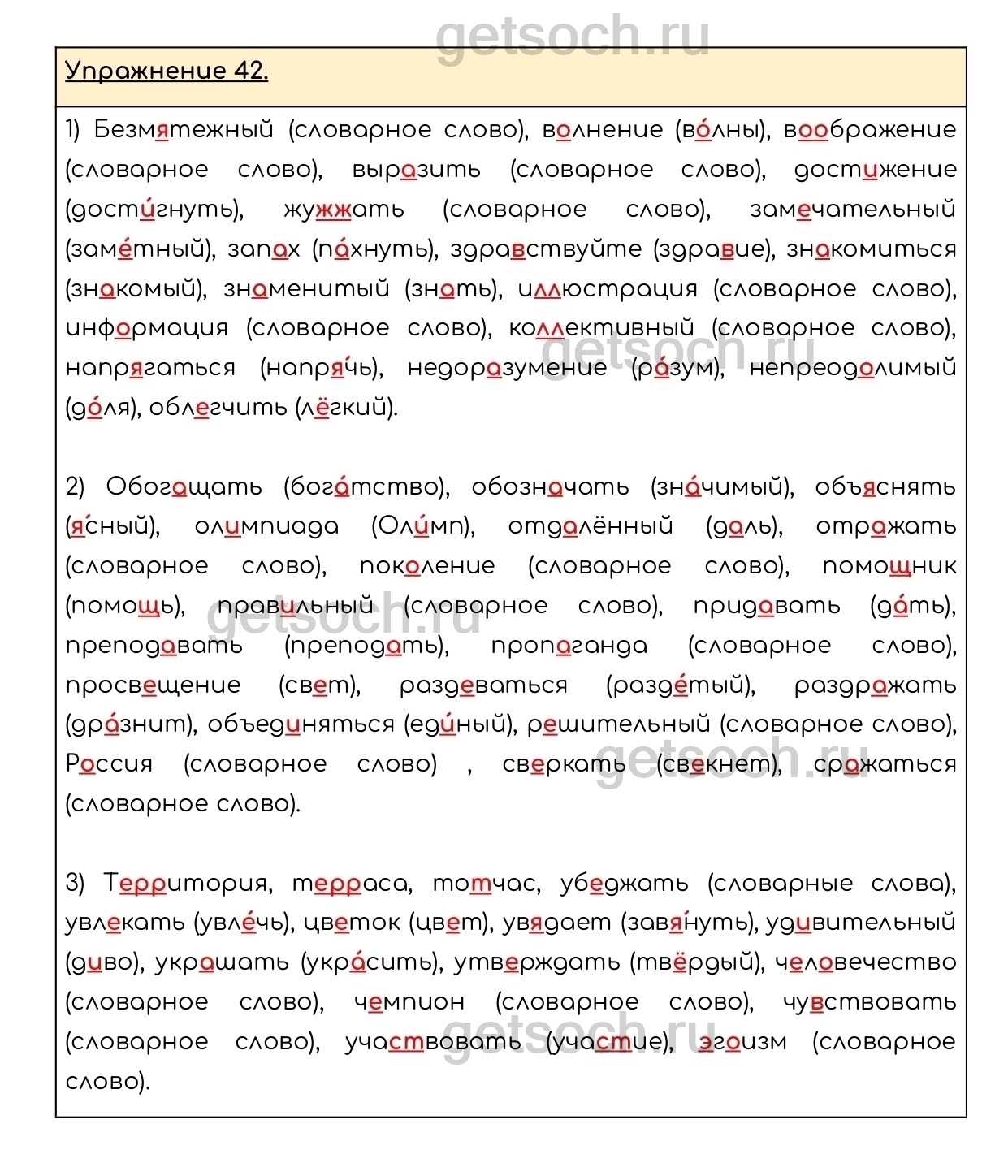 Рассмотрим ответы на Упражнение 42 из учебника по русскому языку для 6 класса Разумовской
