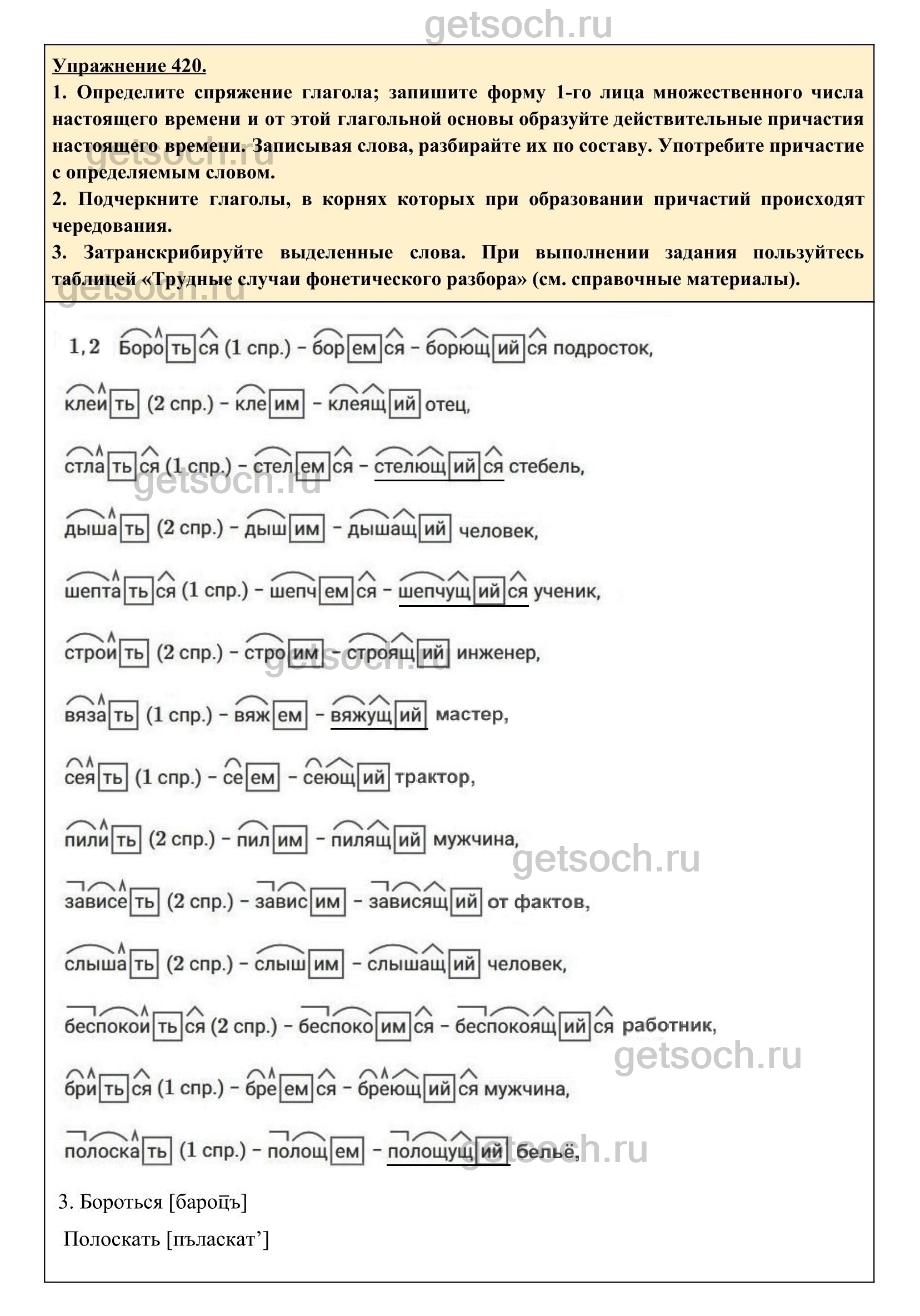 Рассмотрим ответы на Упражнение 420 из учебника по русскому языку для 6 класса Разумовской