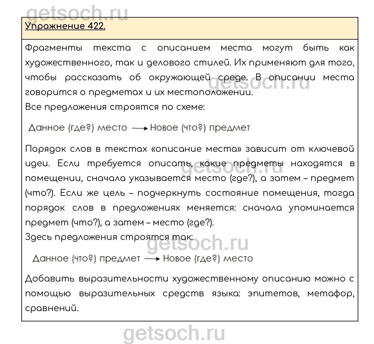 Рассмотрим ответы на Упражнение 422 из учебника по русскому языку для 6 класса Разумовской