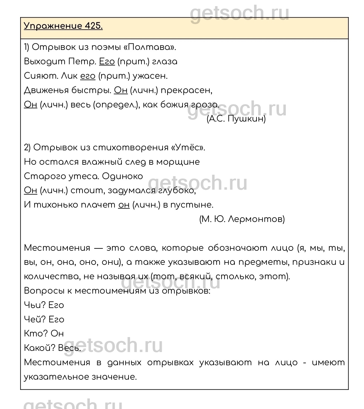 Рассмотрим ответы на Упражнение 425 из учебника по русскому языку для 6 класса Разумовской