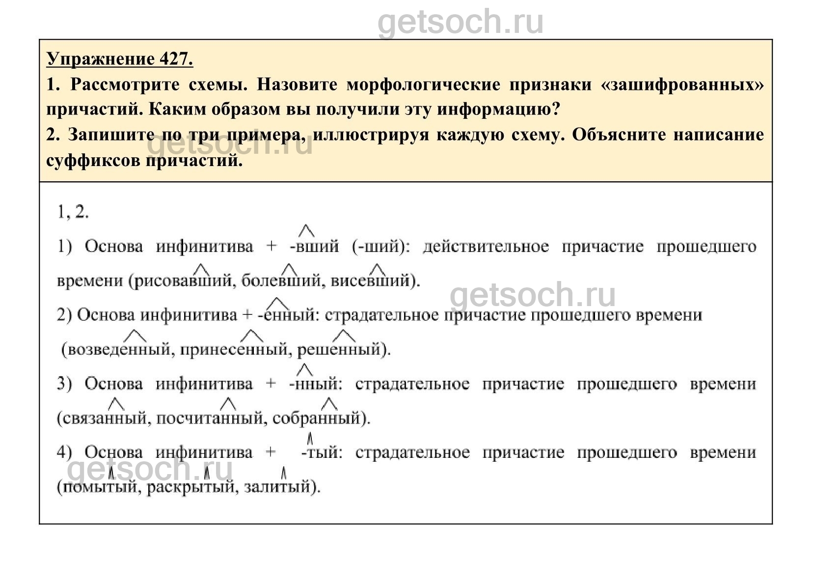 Рассмотрим ответы на Упражнение 427 из учебника по русскому языку для 6 класса Разумовской